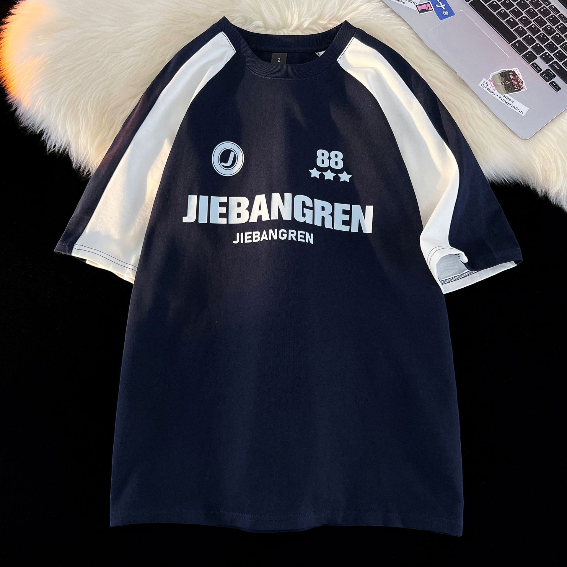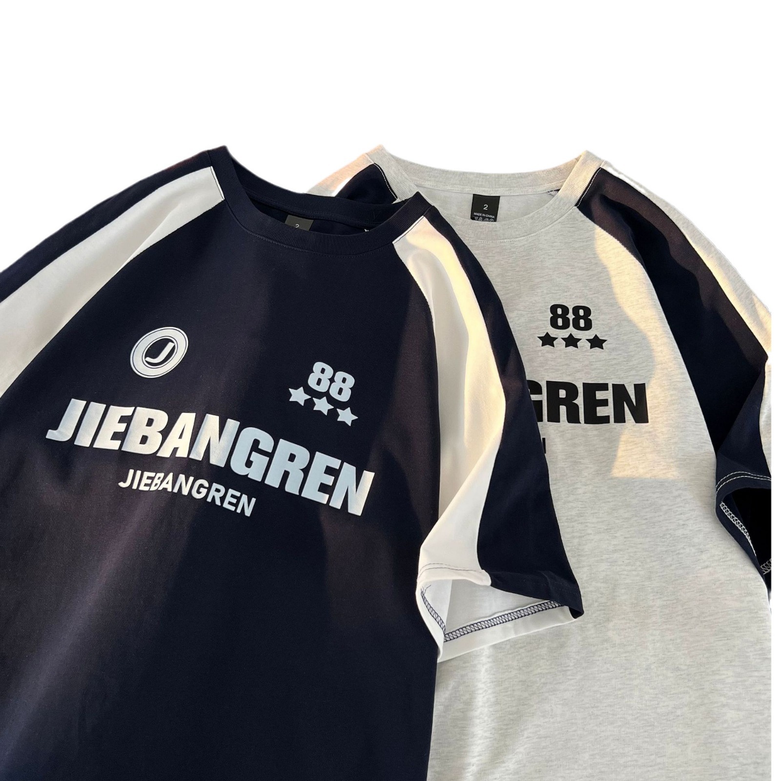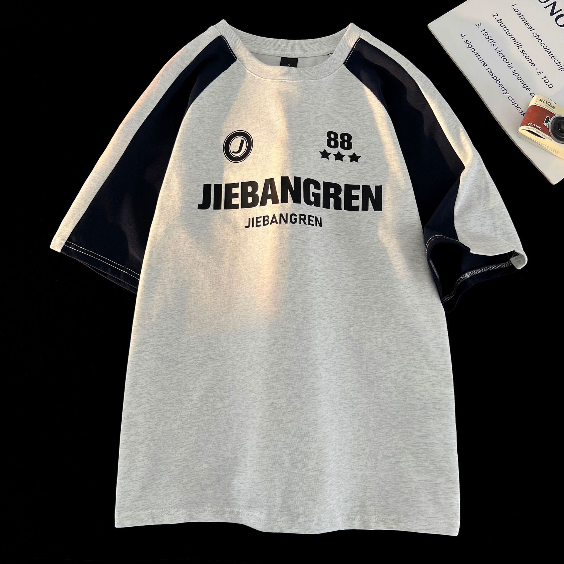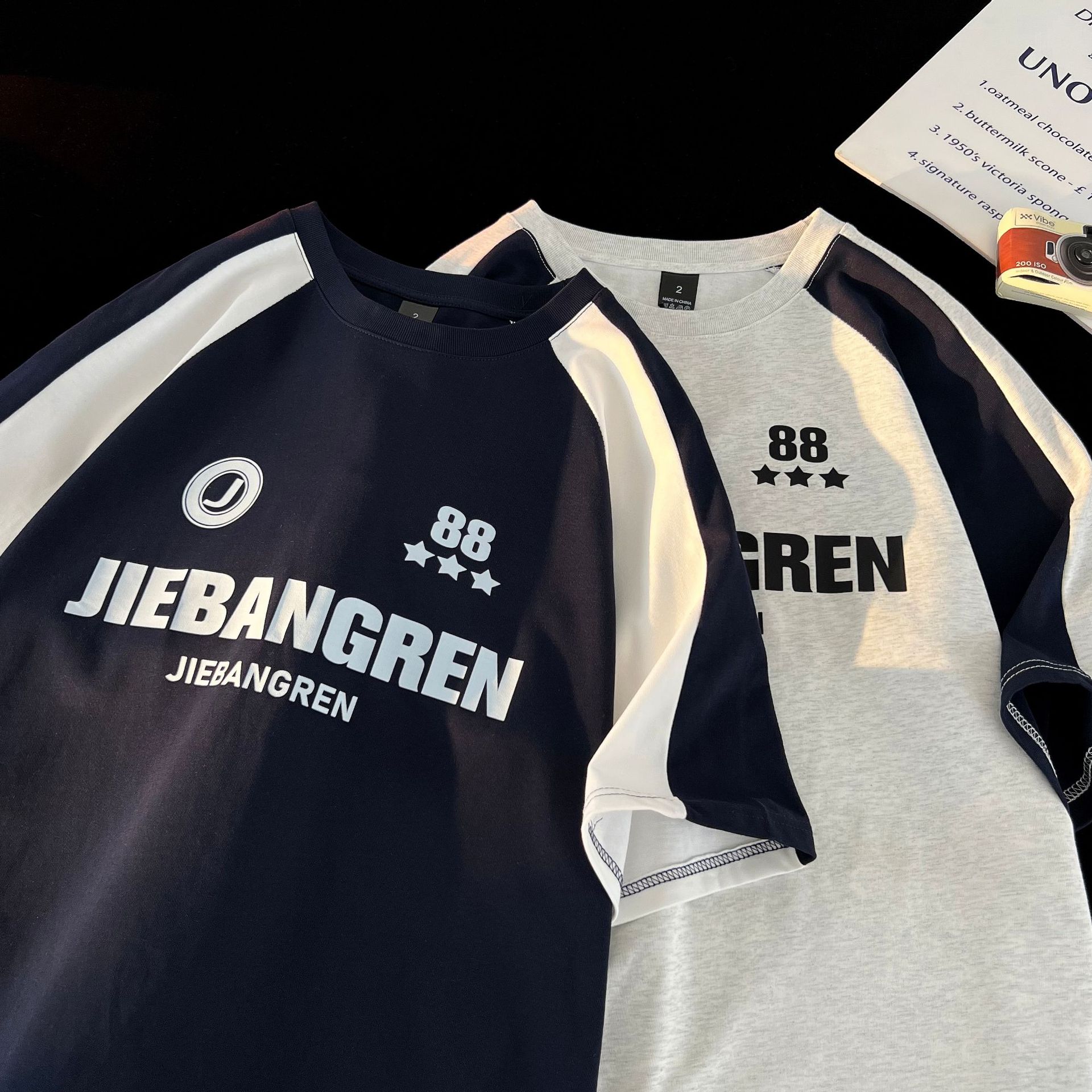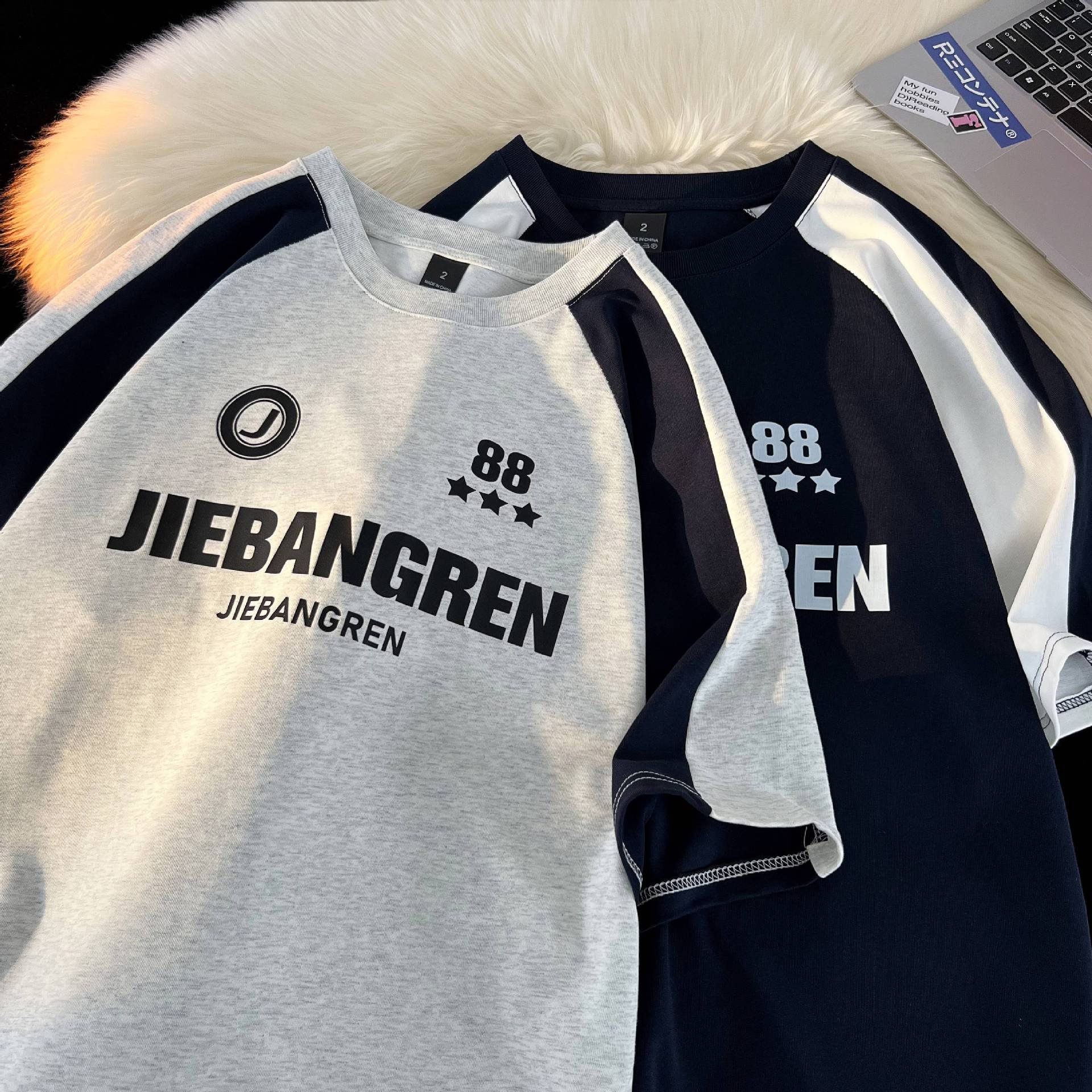重磅纯棉短袖T恤经典复古球衣宽松运动插肩袖半袖男女潮流行体恤