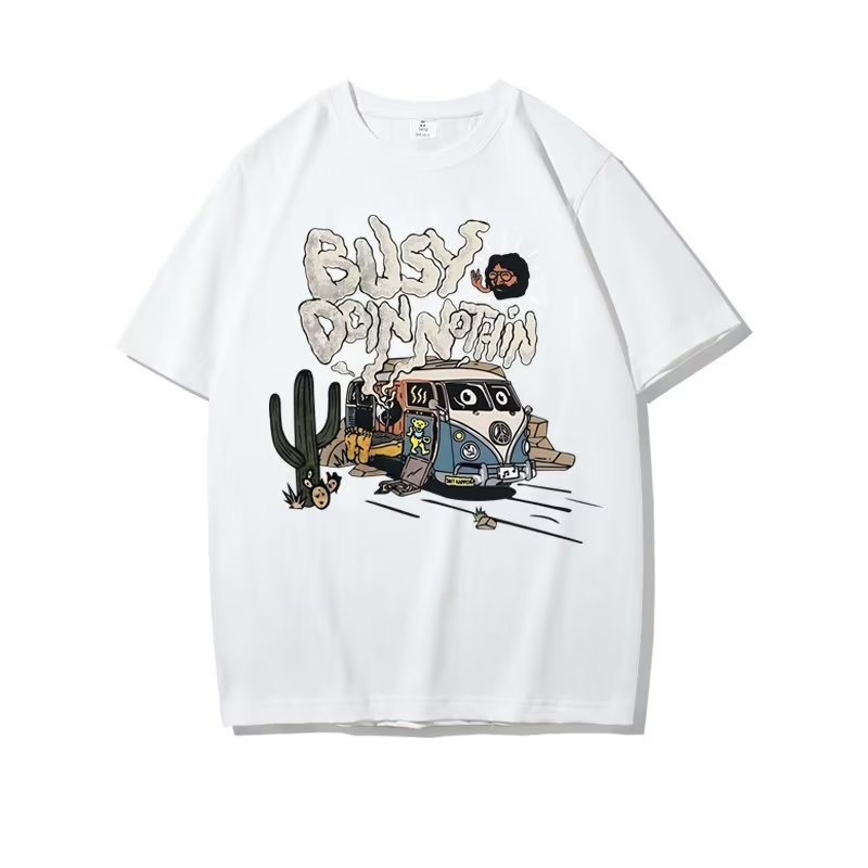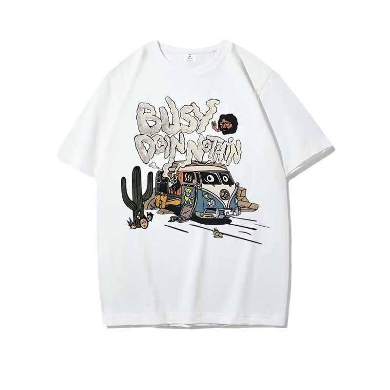 新款短袖T恤男夏季潮流男装宽松半袖上衣纯棉卡通印花体恤衫