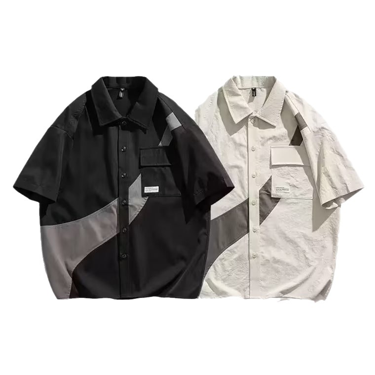 短袖衬衫夏季男士日系休闲宽松衬衣潮牌痞帅垂感工装外套半袖T恤