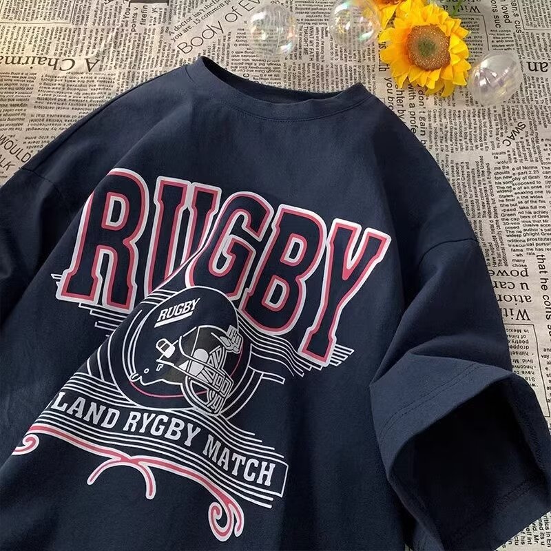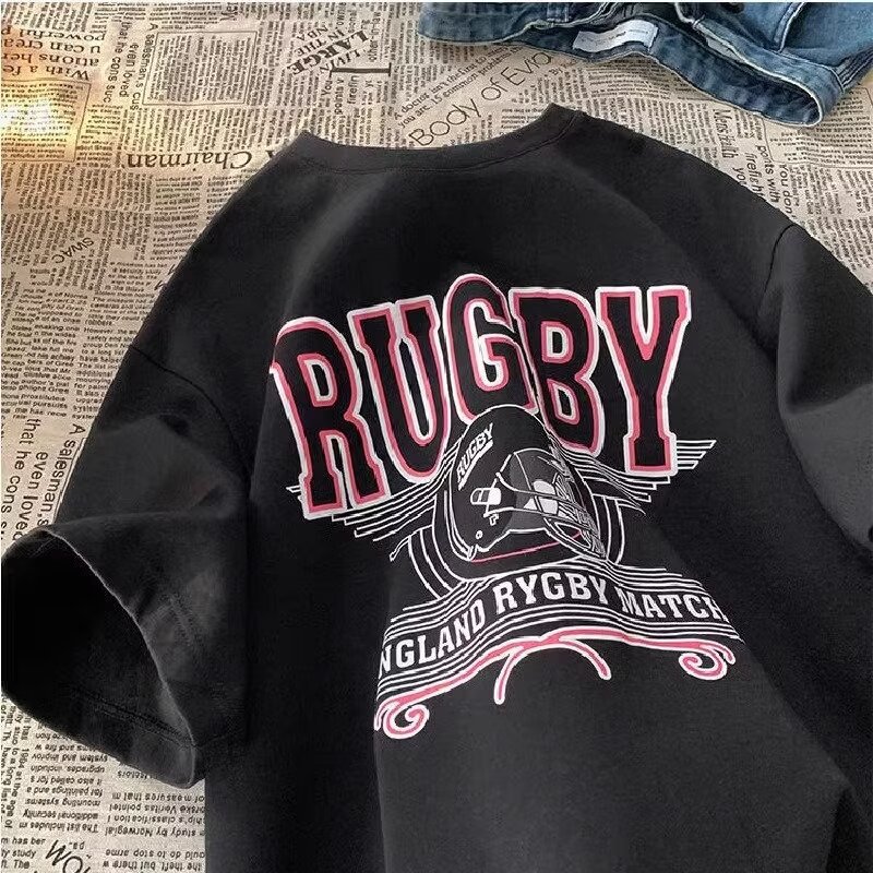 短袖t恤男潮牌ins夏季字母印花五分袖日系宽松圆领半袖上衣服白色