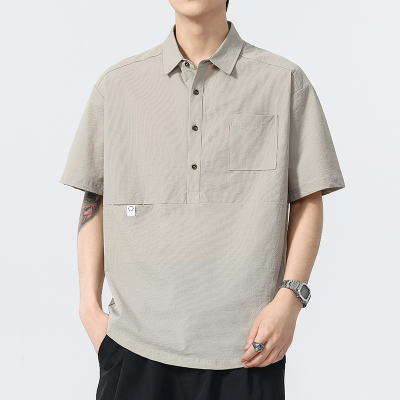 高端美式复古冰丝凉感工装Polo衫男夏季潮牌宽松衬衫领短袖T恤男