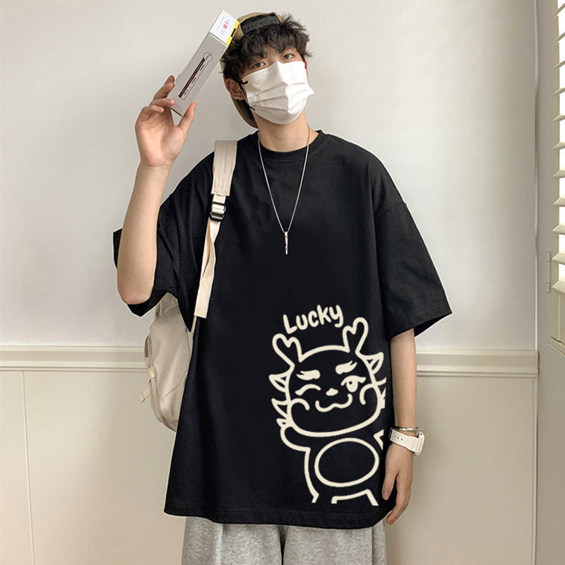 短袖T恤男新款夏季卡通印花体恤ins情侣潮牌宽松棉半袖