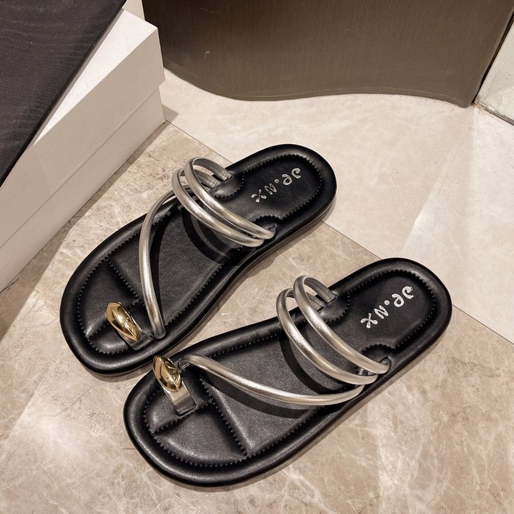夏季新款大码平底凉拖鞋女外穿套趾一字拖两穿凉鞋