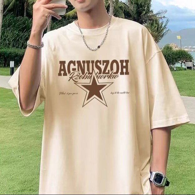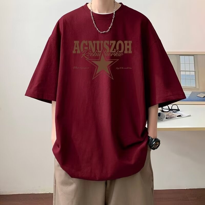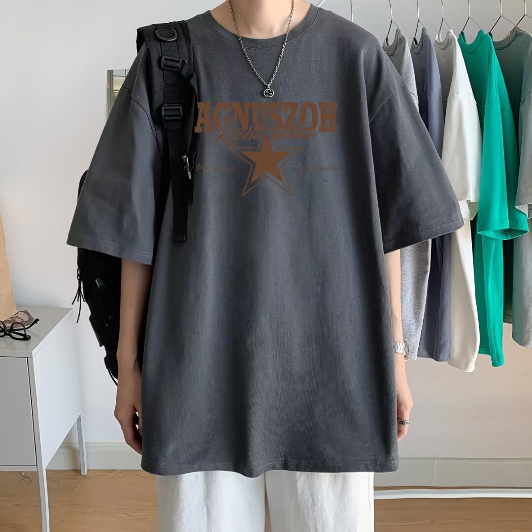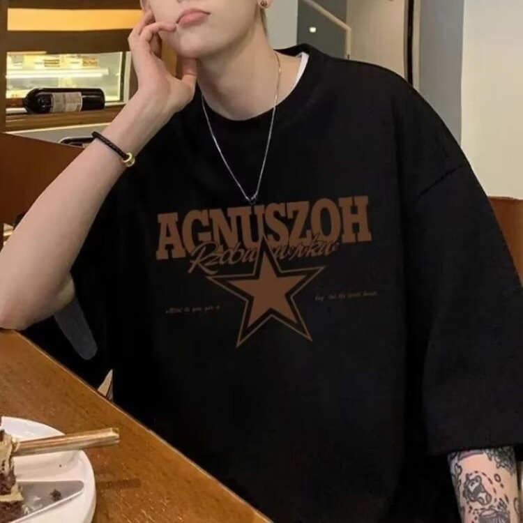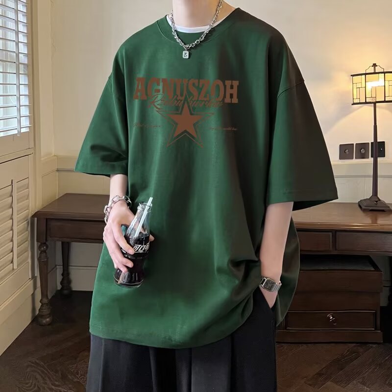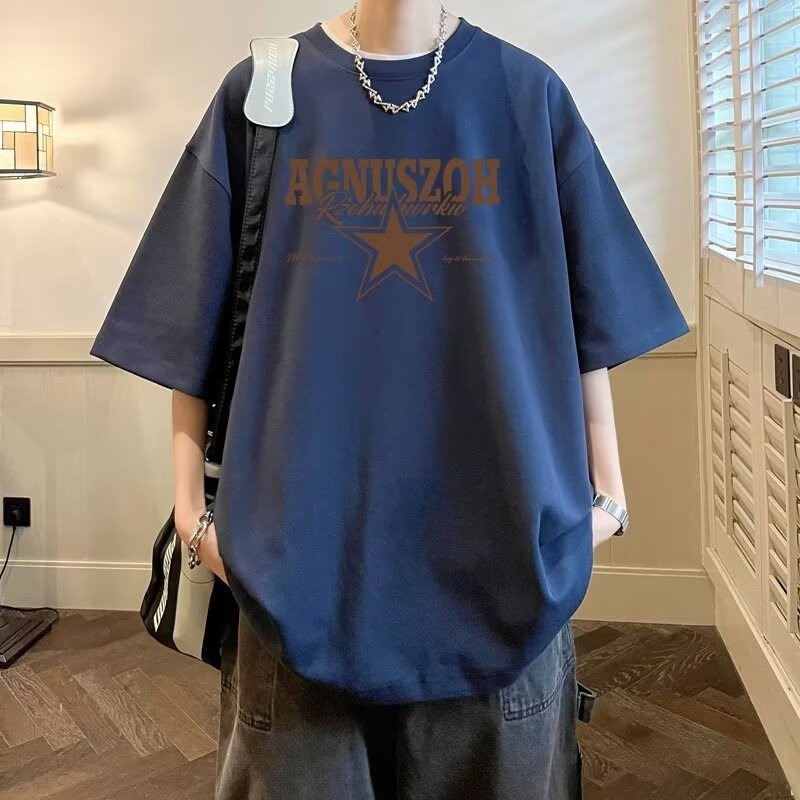 夏季新款短袖t恤男潮流半袖港风宽松体恤男装上衣炸街藏青色