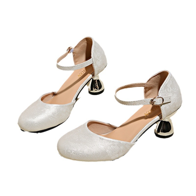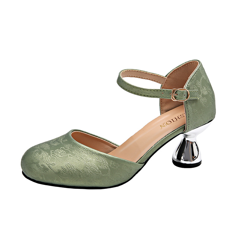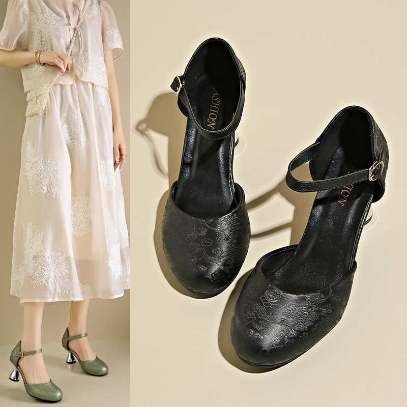 35-43码 大码女鞋夏季国风配旗袍包头凉鞋女新中式复古粗跟高跟鞋