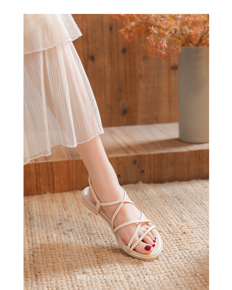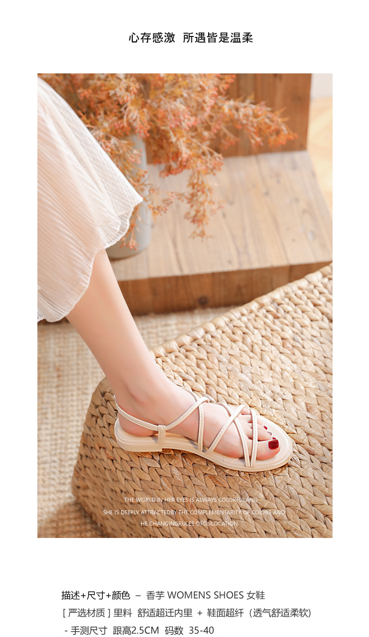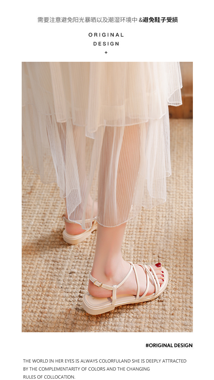 平底凉鞋女仙女风年新款夏季网红百搭露趾罗马鞋细带厚底韩版