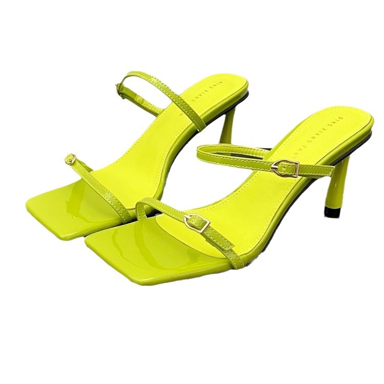 夏季新款性感细跟拖鞋女外穿皮带扣双条带高跟鞋时尚女鞋