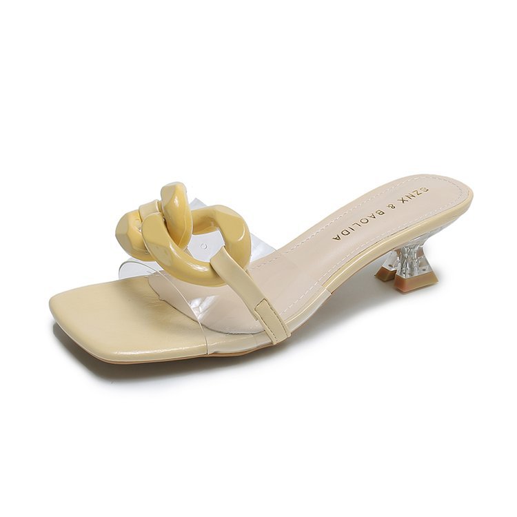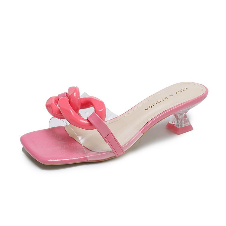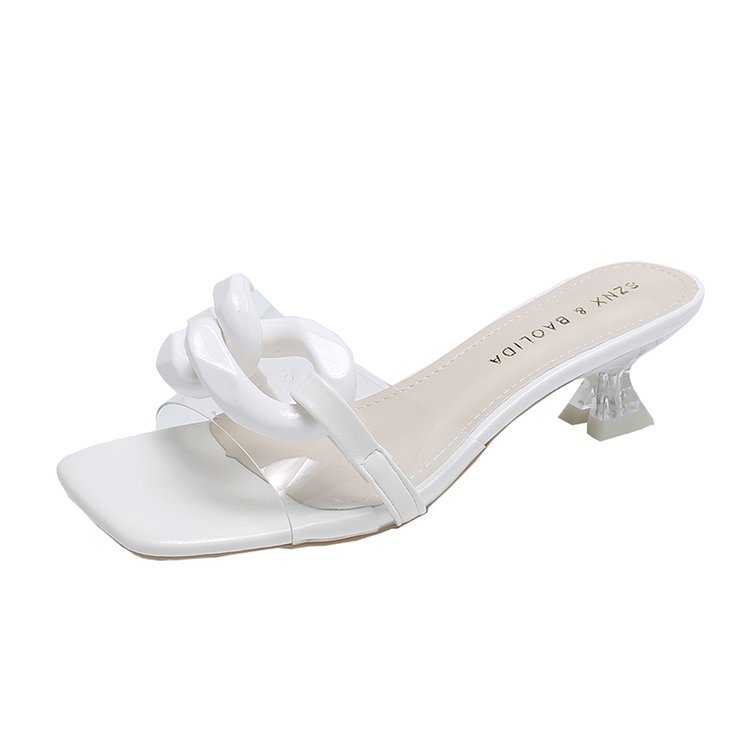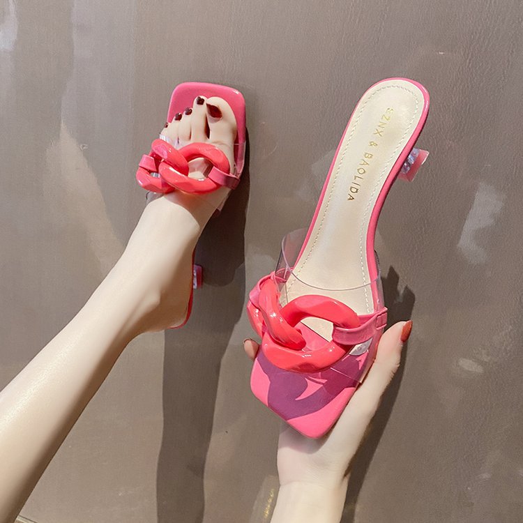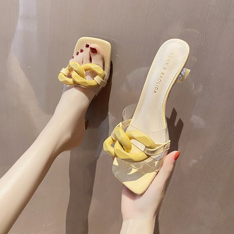 夏季新款仙女风细跟拖鞋女方头露趾一字拖时尚高跟女鞋