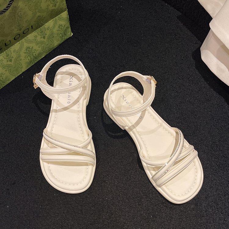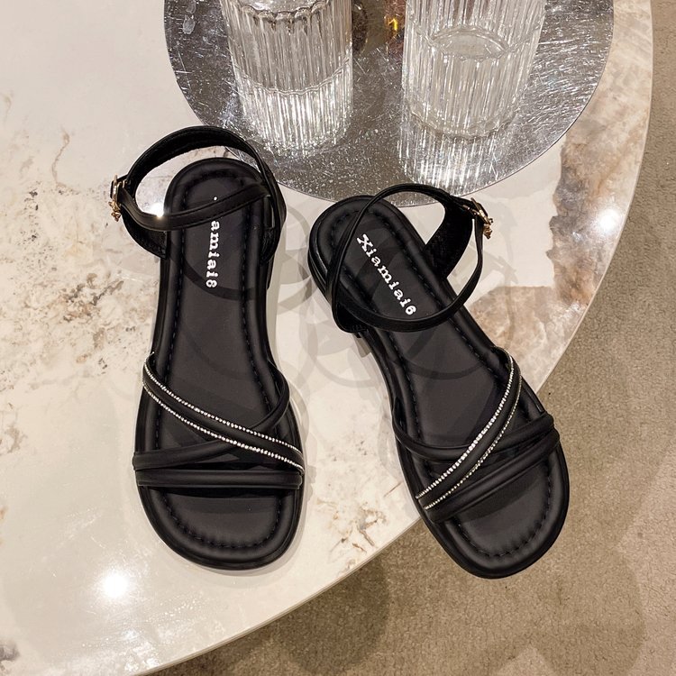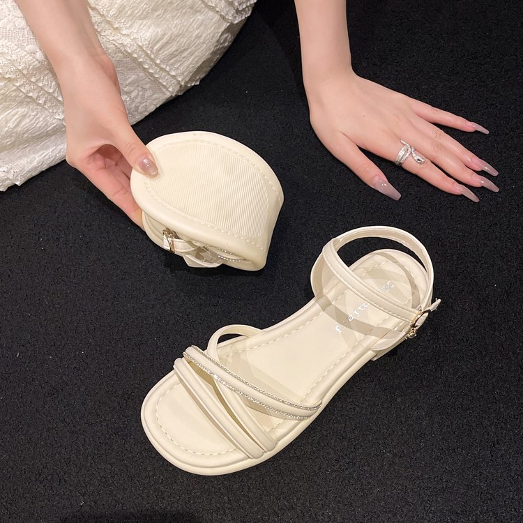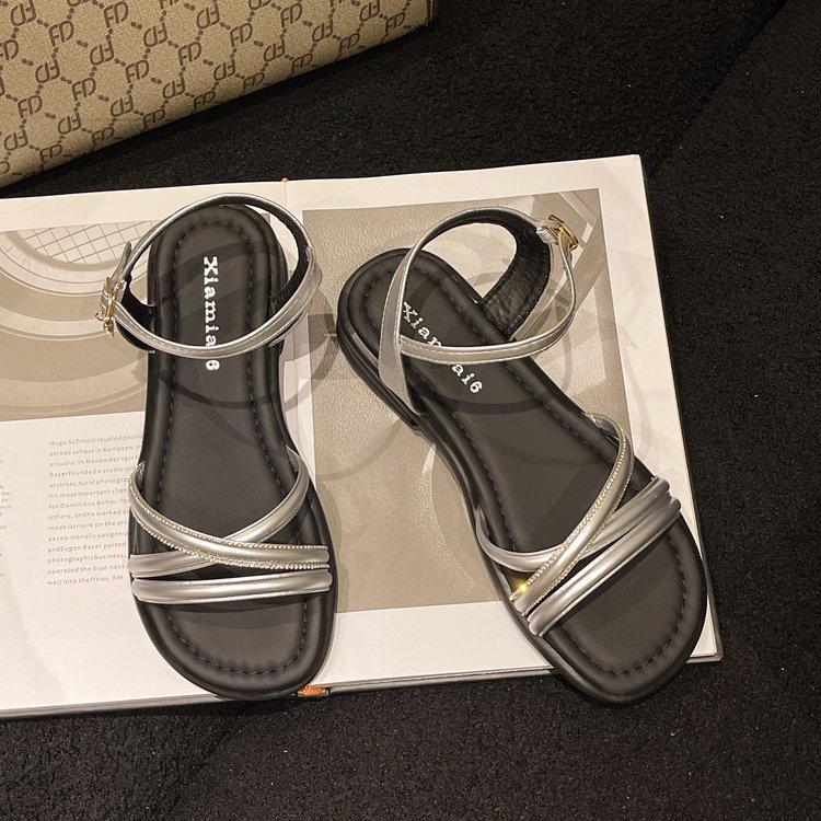 夏季新款平底凉鞋女外穿一字搭扣露趾软底仙女风低跟女鞋