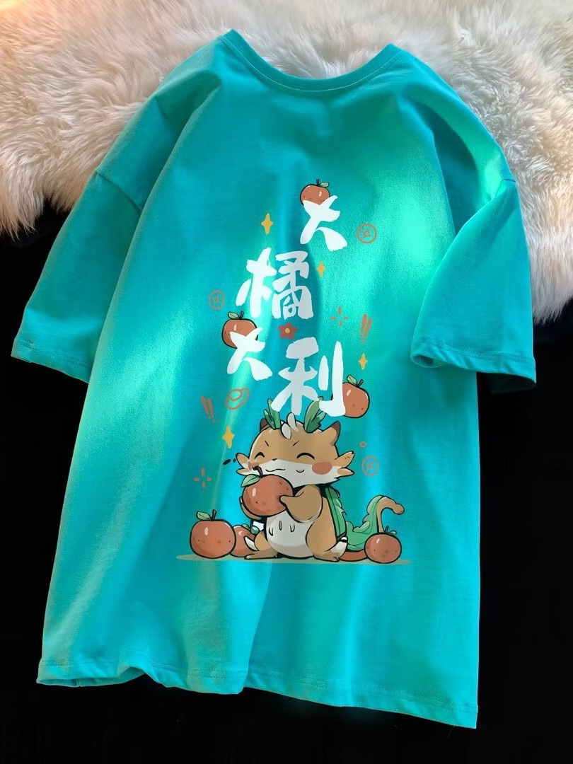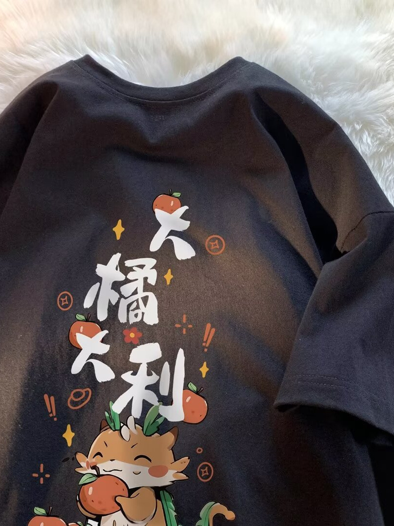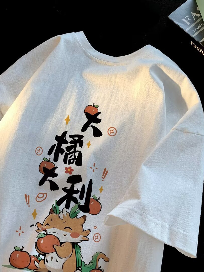 新年t恤男红色短袖宽松纯棉大码春节半袖上衣