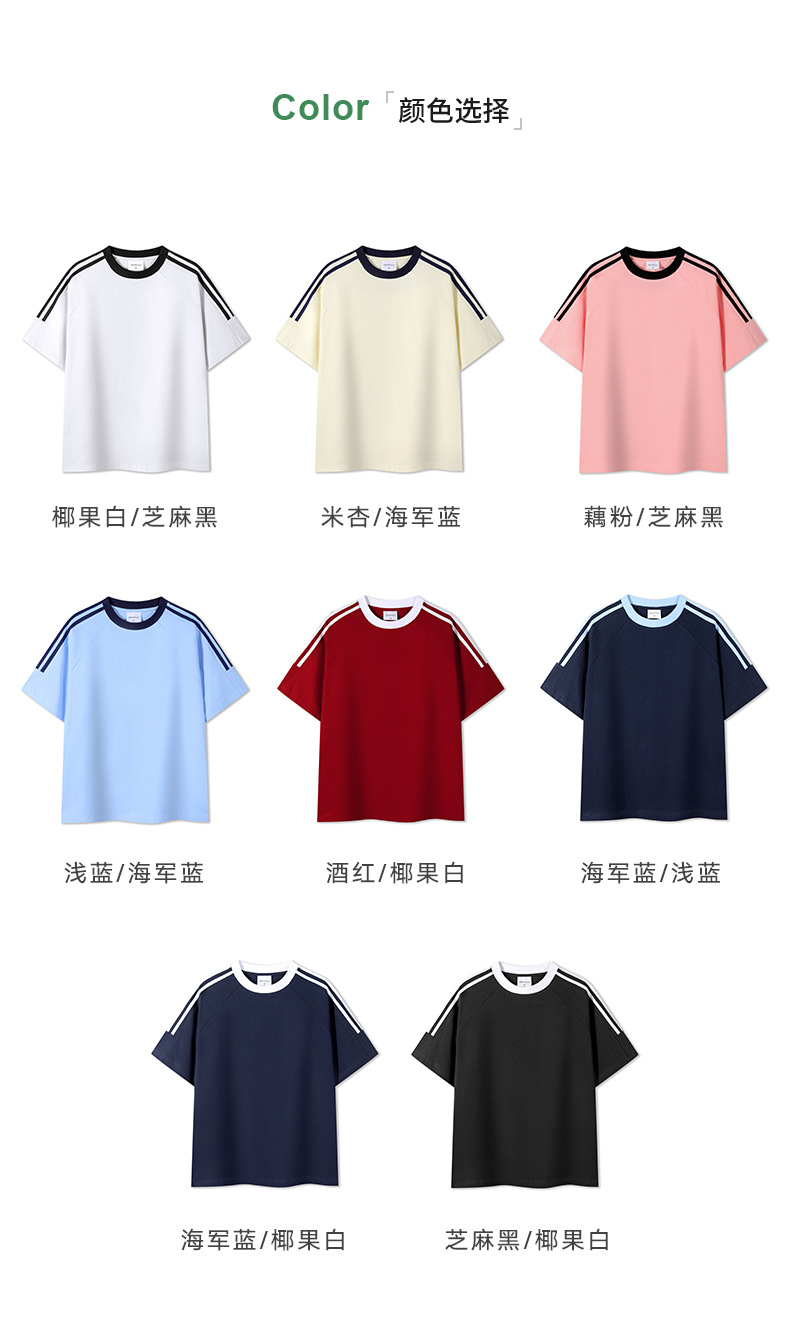 250g重磅三条杠纯棉美式复古男士纯色百搭休闲潮牌全棉短袖t恤男