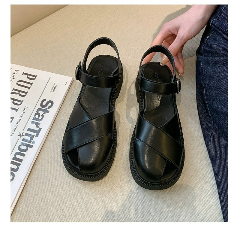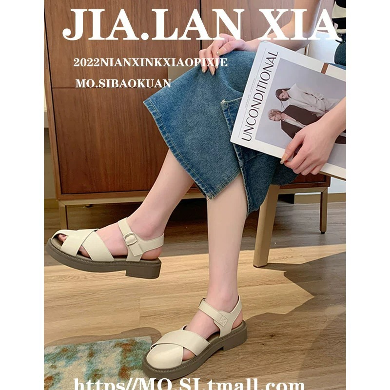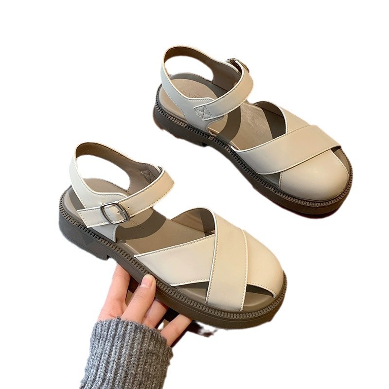 爆款包头凉鞋女夏新款厚底沙滩罗马鞋仙女配裙子平底单鞋