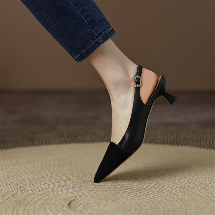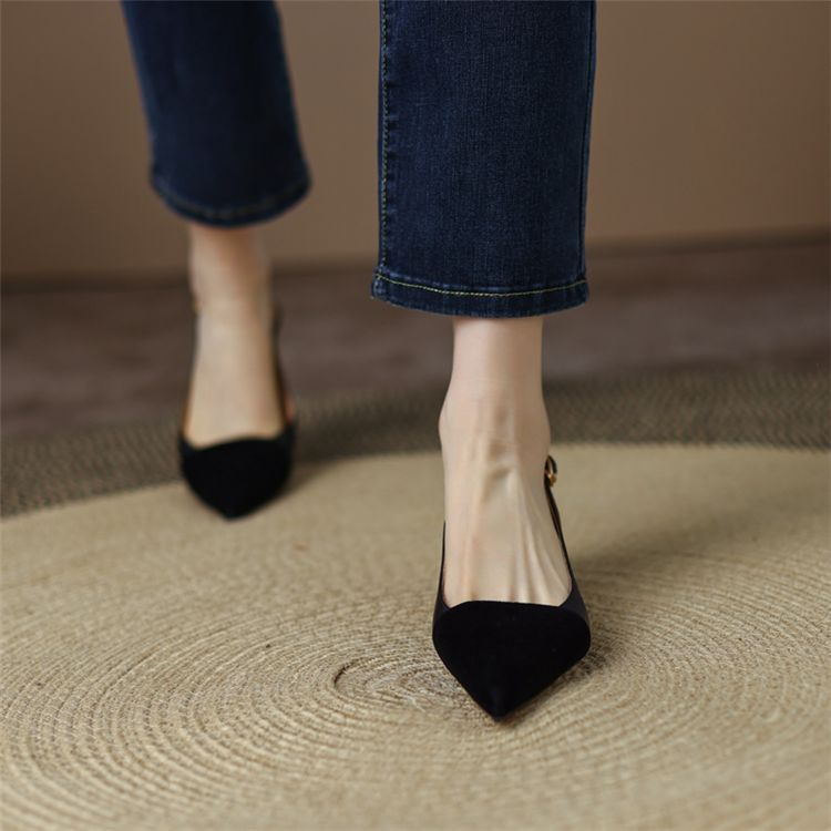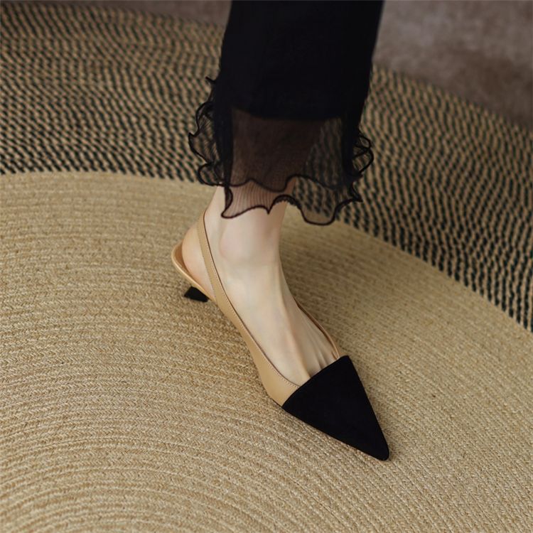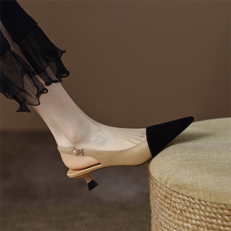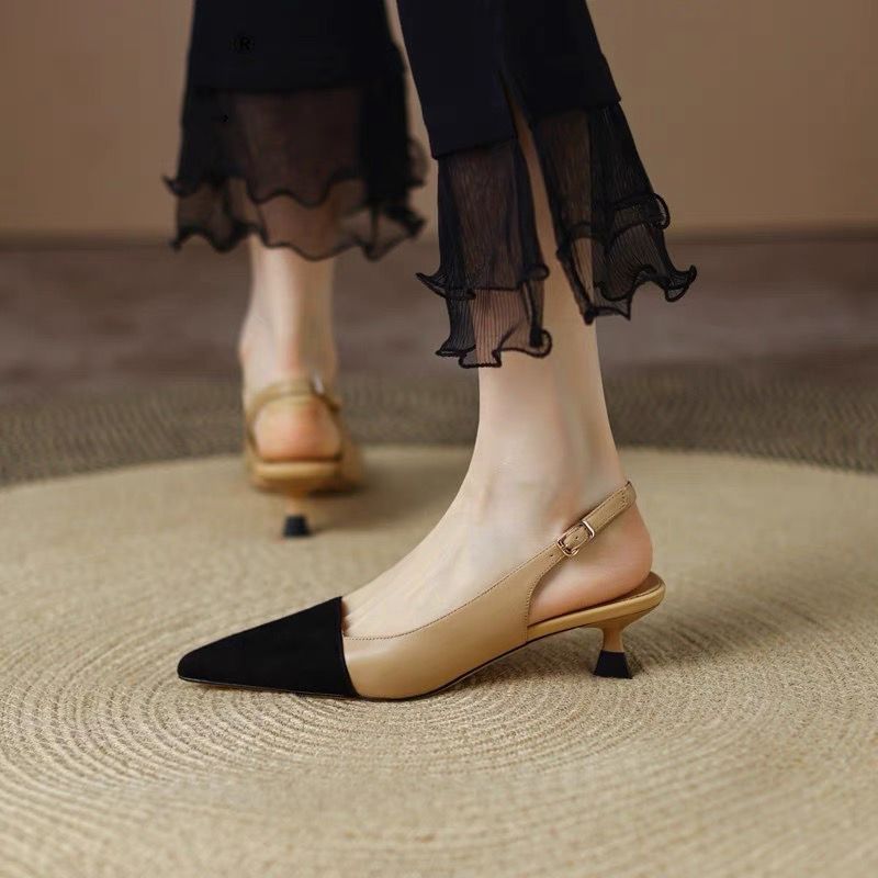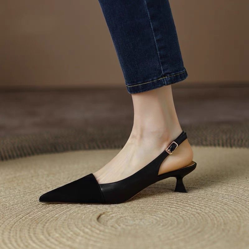 爆款鞋子包头凉鞋女细跟新款夏季法式低跟猫跟尖头单鞋配裙子