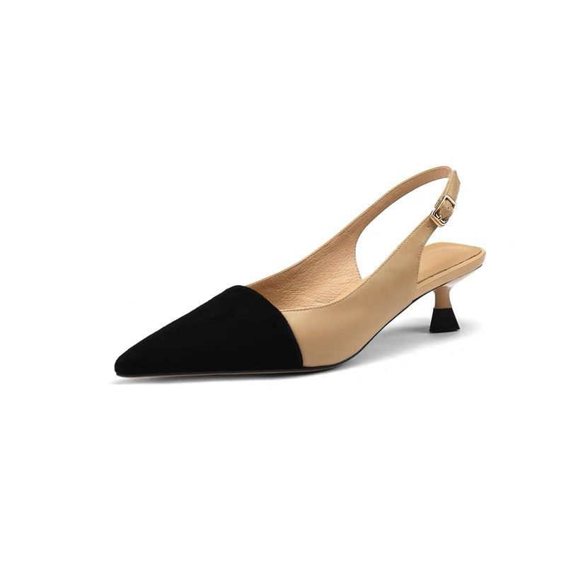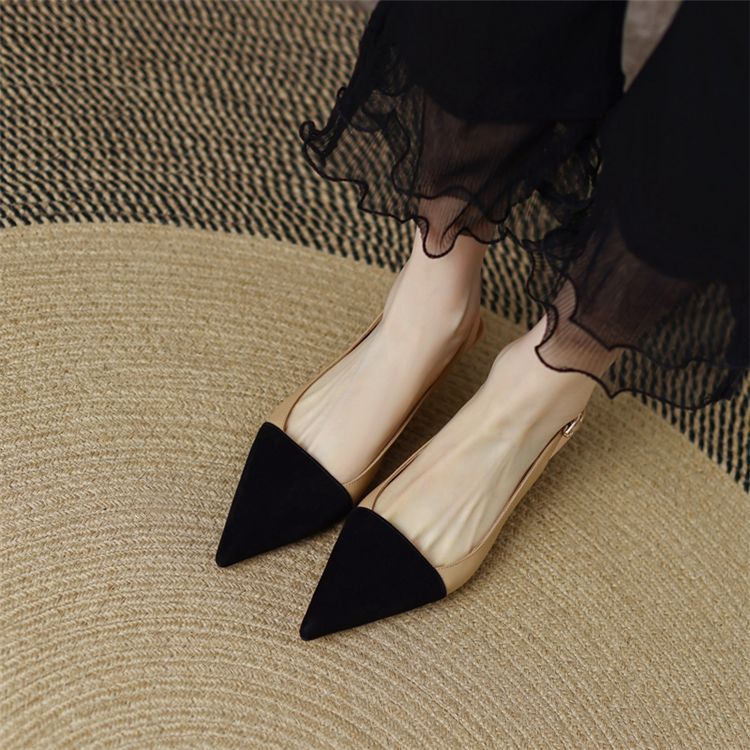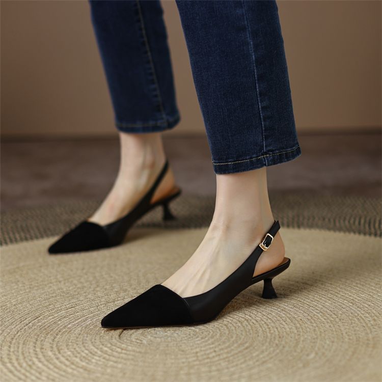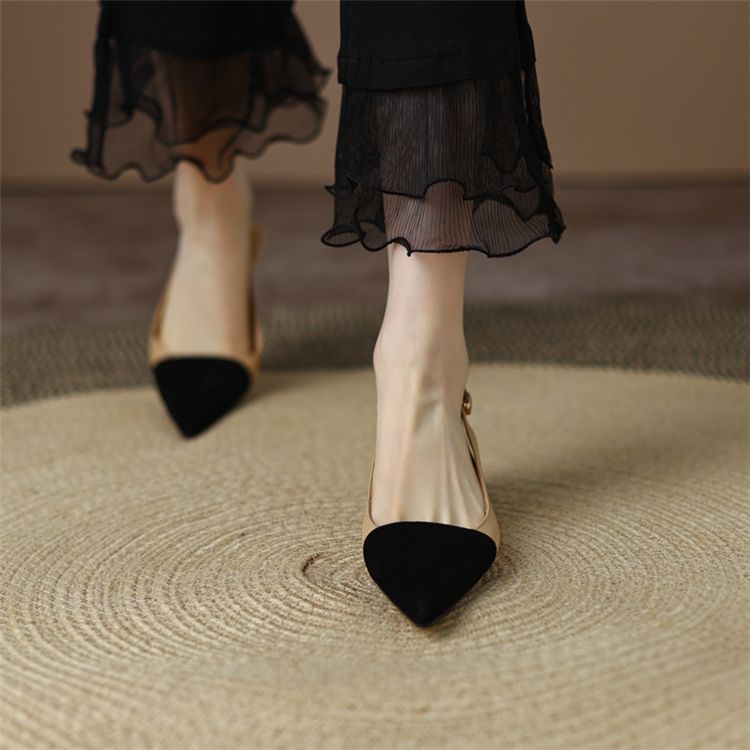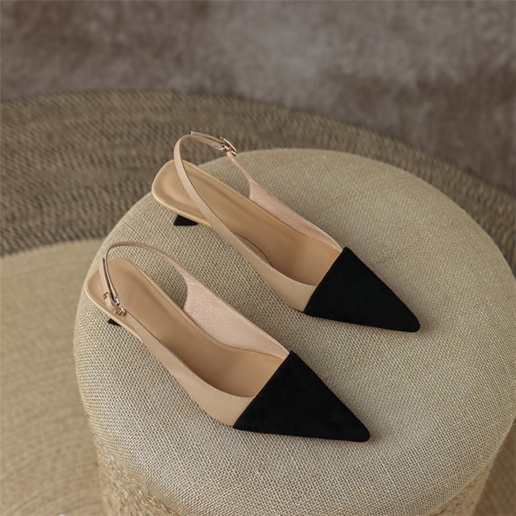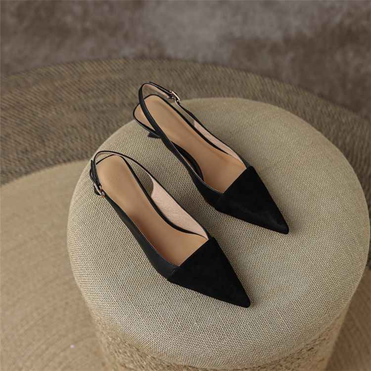 爆款鞋子包头凉鞋女细跟新款夏季法式低跟猫跟尖头单鞋配裙子
