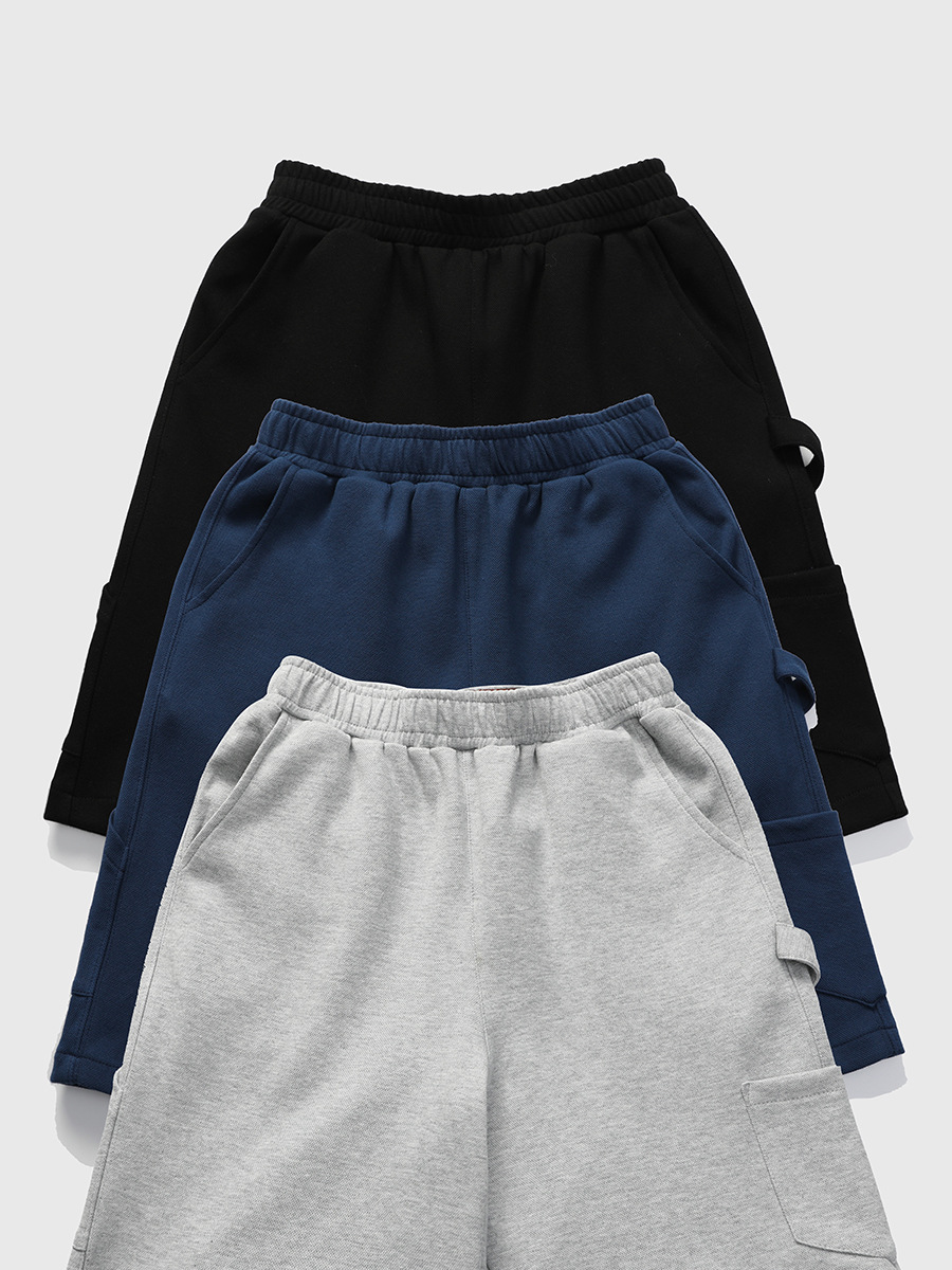多口袋重磅五分裤男士夏季韩版日系纯色宽松大码外穿运动休闲短裤