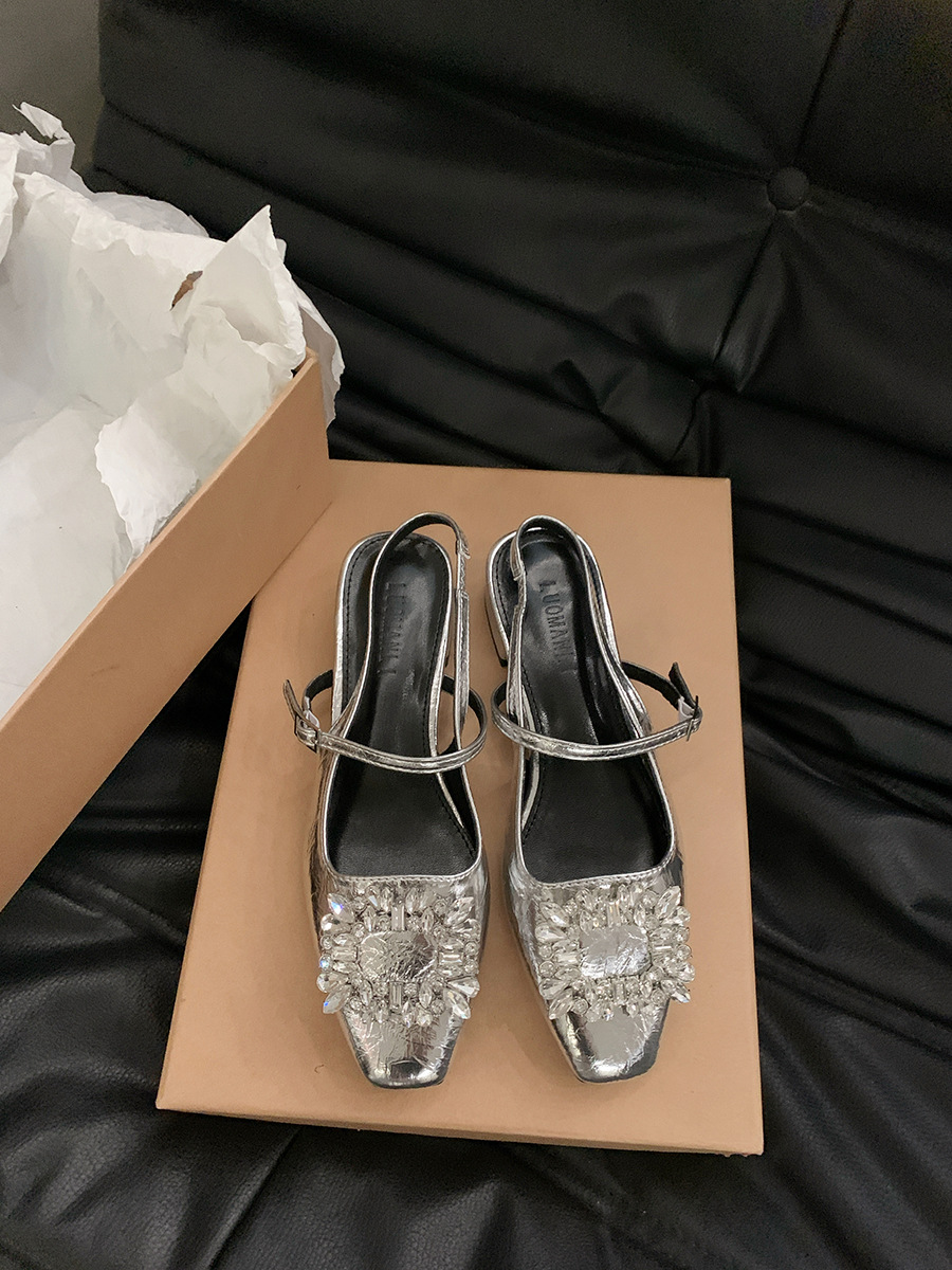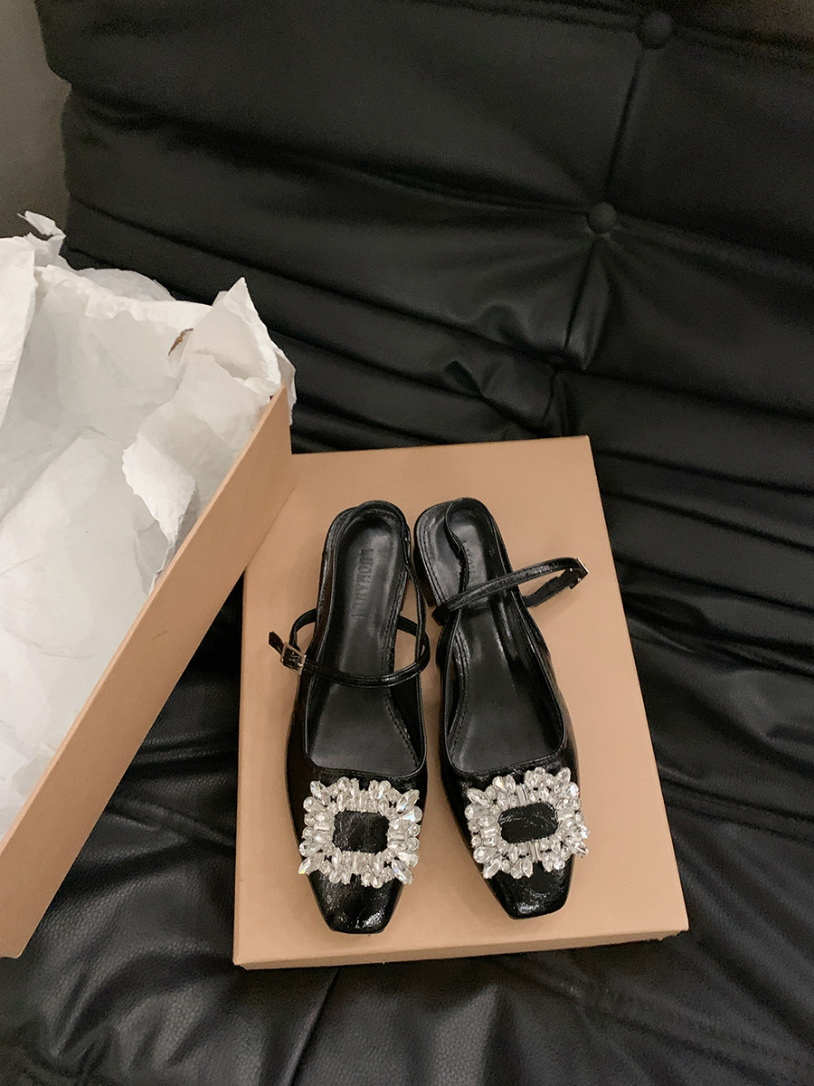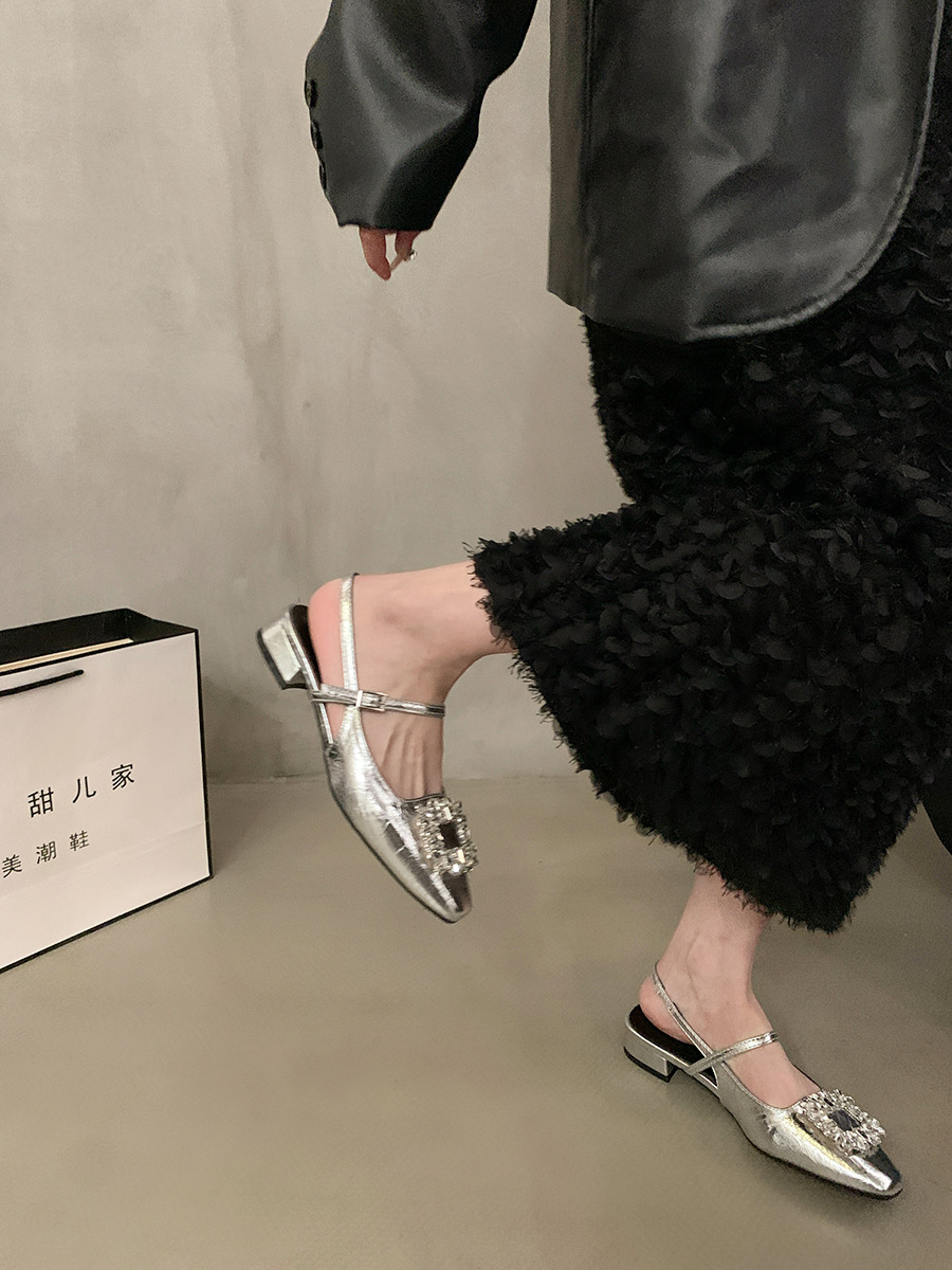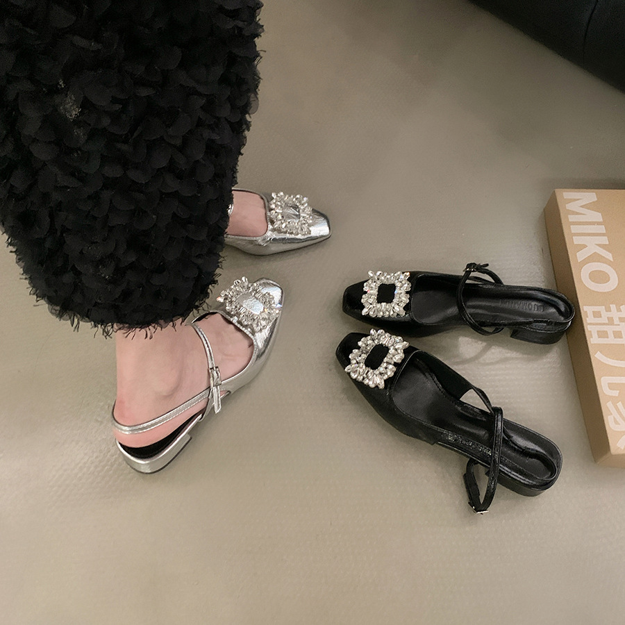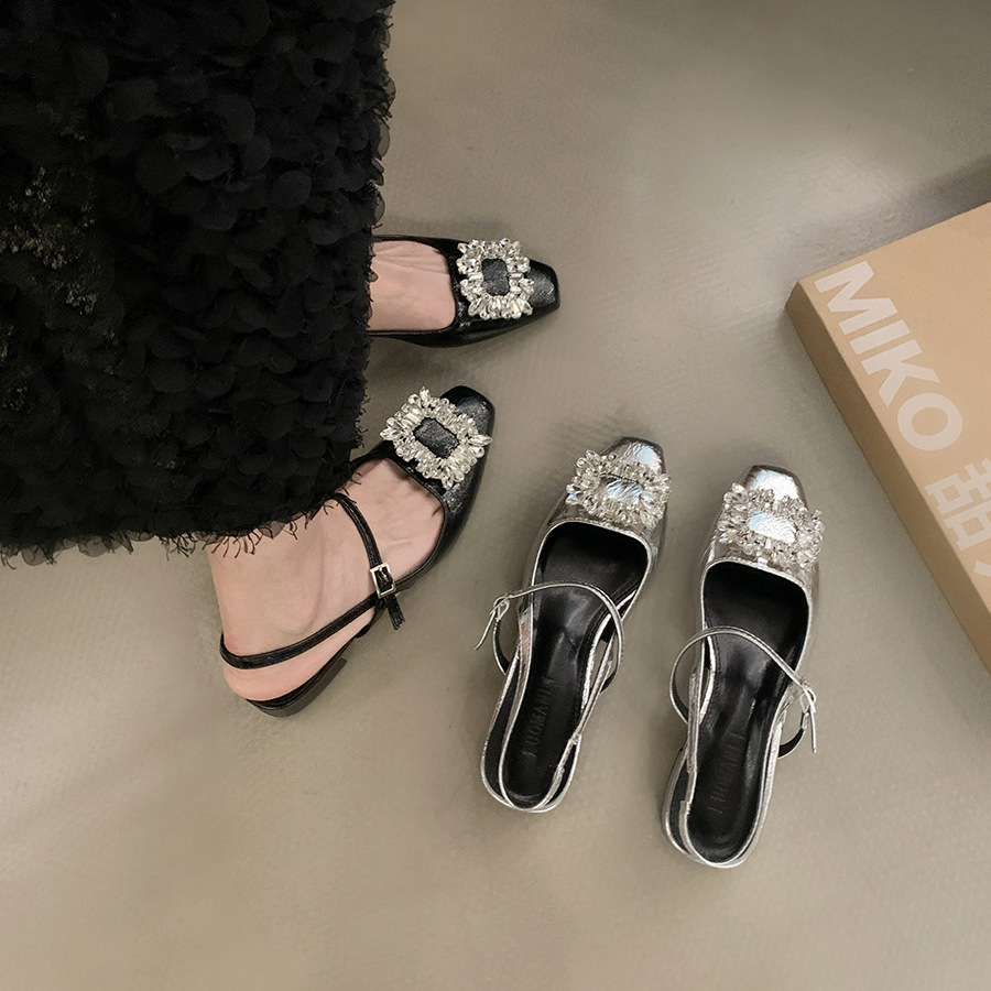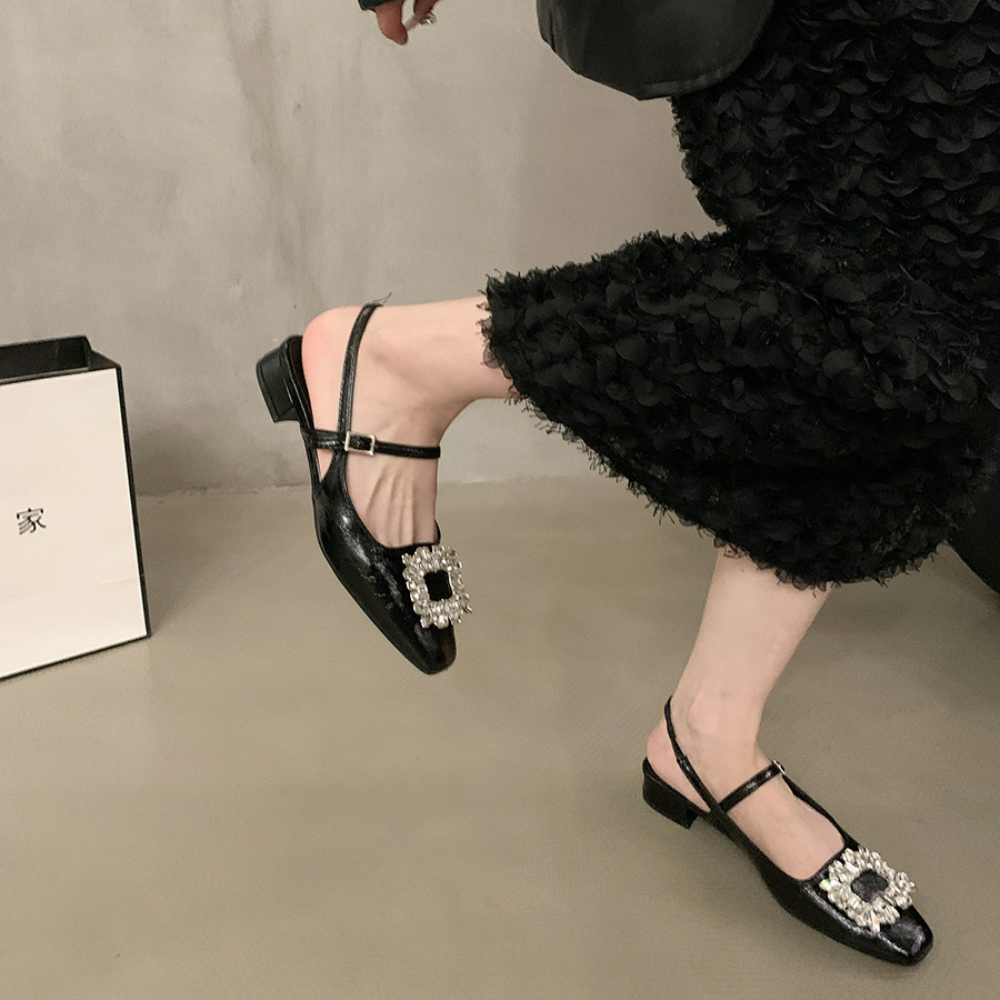 法式低跟方扣水钻包头凉鞋仙女鞋子新款夏季配裙子高级感单鞋