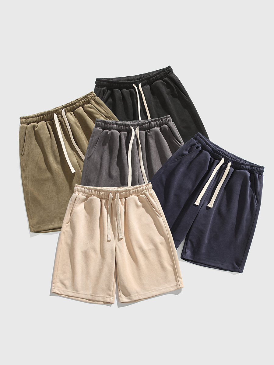 Suede 280g American loose shorts sports men's summer Korean version of solid color loose large size men's five quarter pants