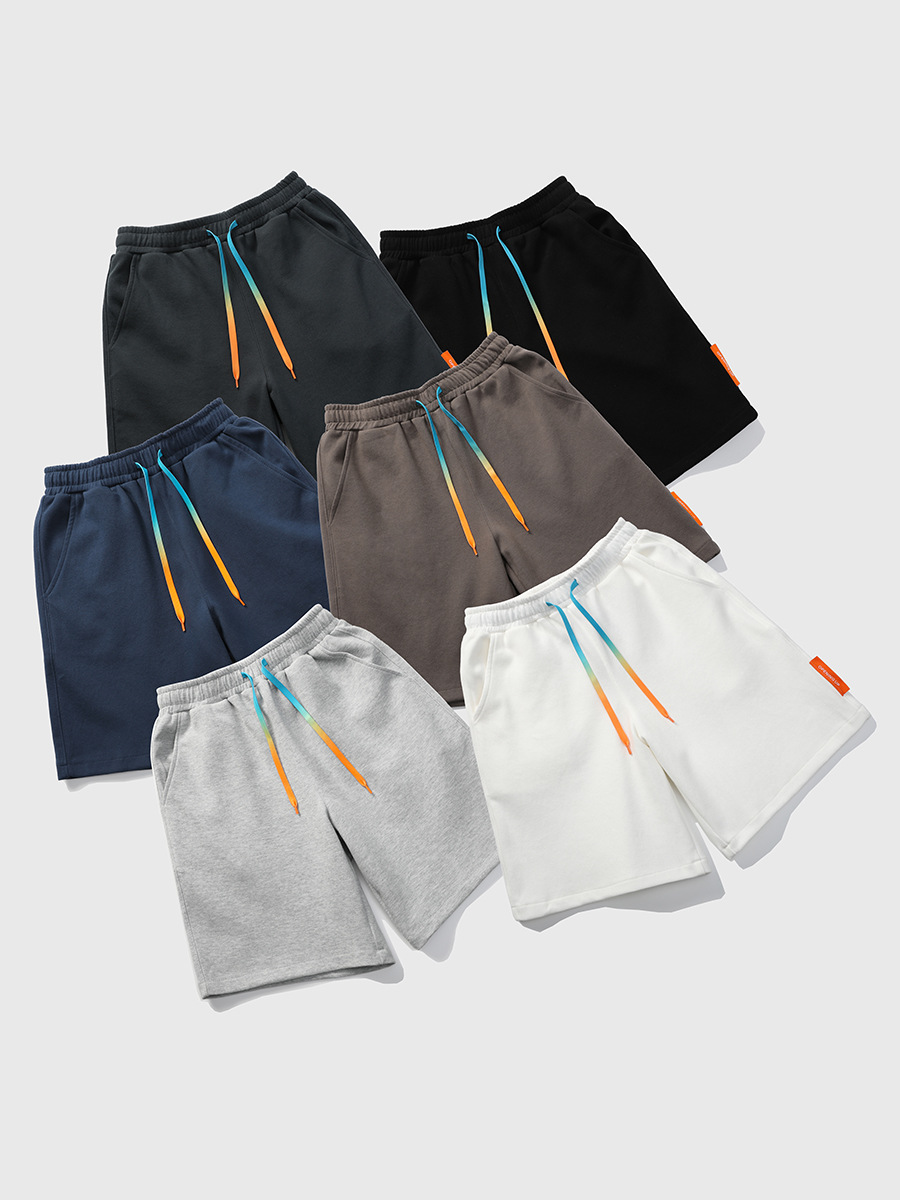 短裤男夏季新款日系彩带运动纯色休闲裤男装宽松ins潮流五分裤子