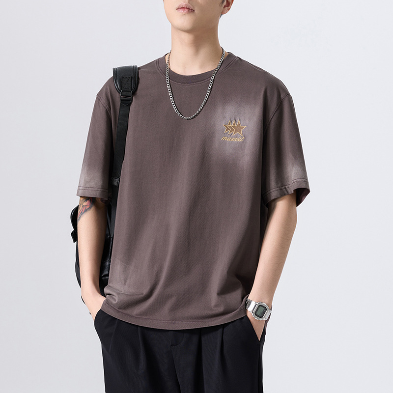 260g美式重磅水洗纯棉T恤男短袖夏季新款潮流圆领刺绣宽松上衣男