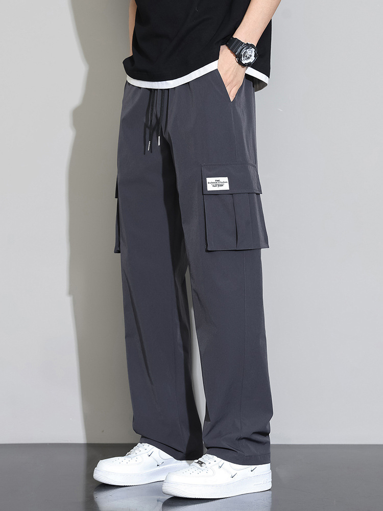 冰丝薄裤子男生夏季工装运动裤男士宽松直筒休闲长裤