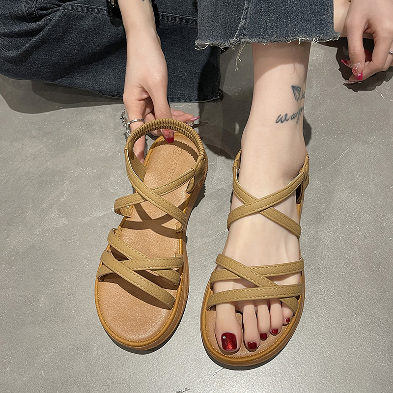 夏季新款韩版平底凉鞋女松紧带套脚交叉软底学生休闲凉鞋