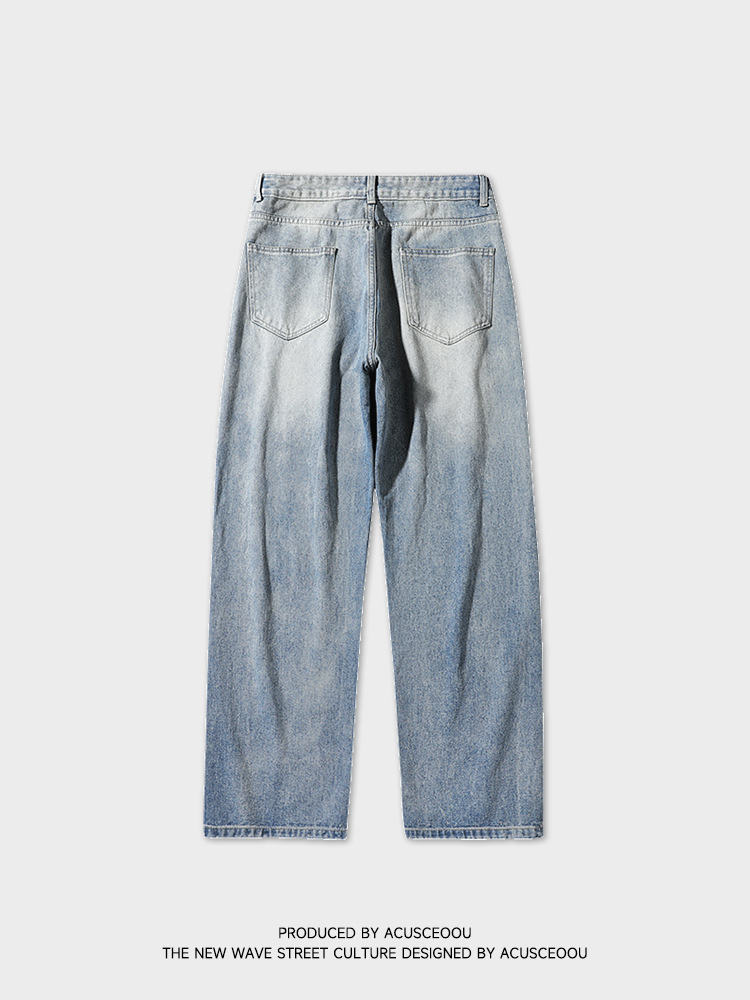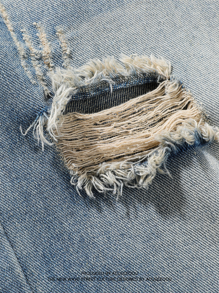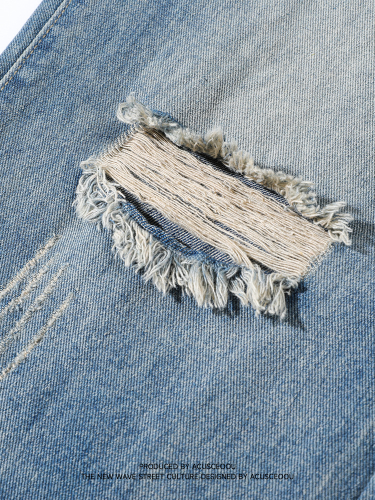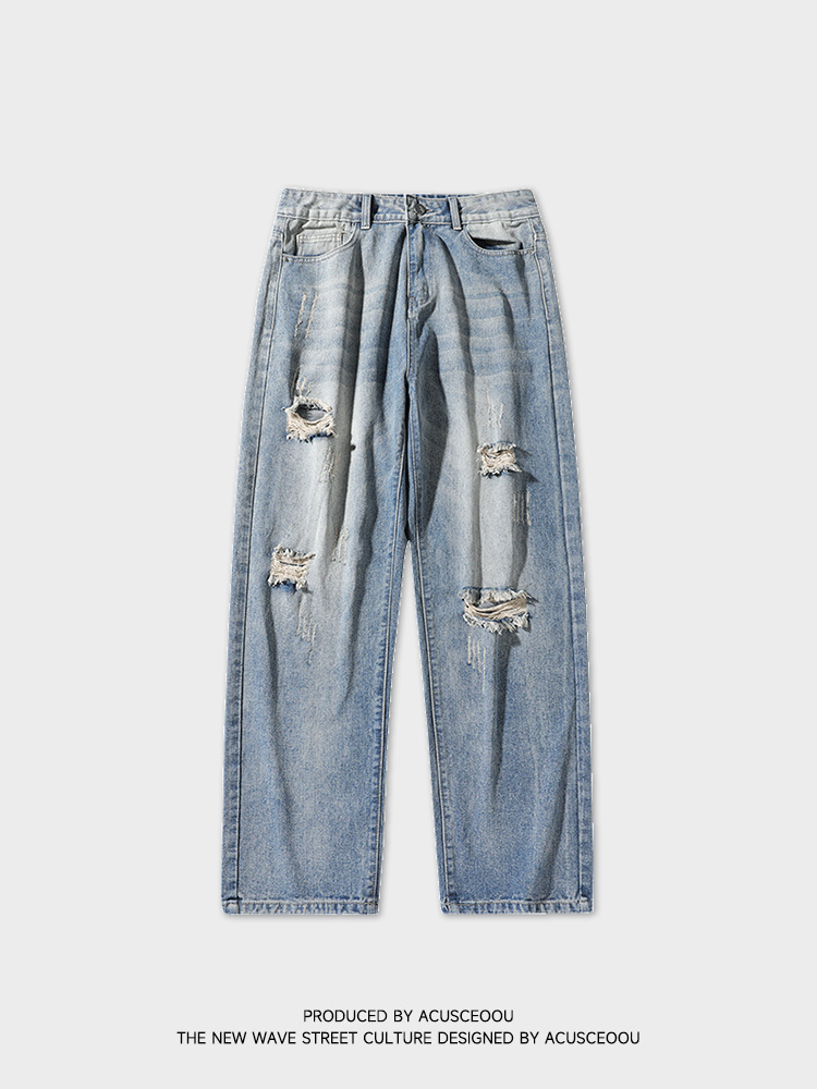 复古破洞阔腿牛仔裤春夏新品潮牌个性百搭直筒长裤男