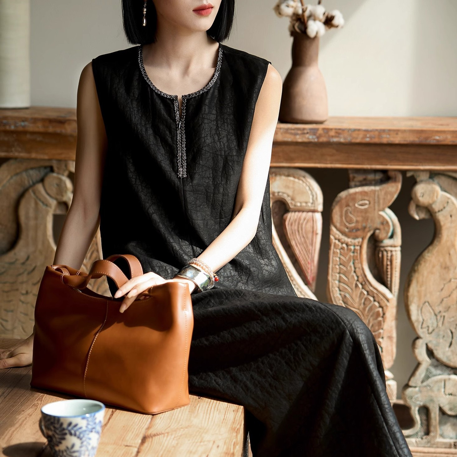 赫本风高级圆领背心气质连衣裙女夏季新款黑色显白无袖裙子