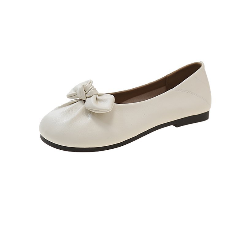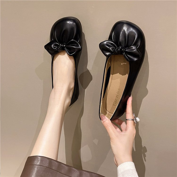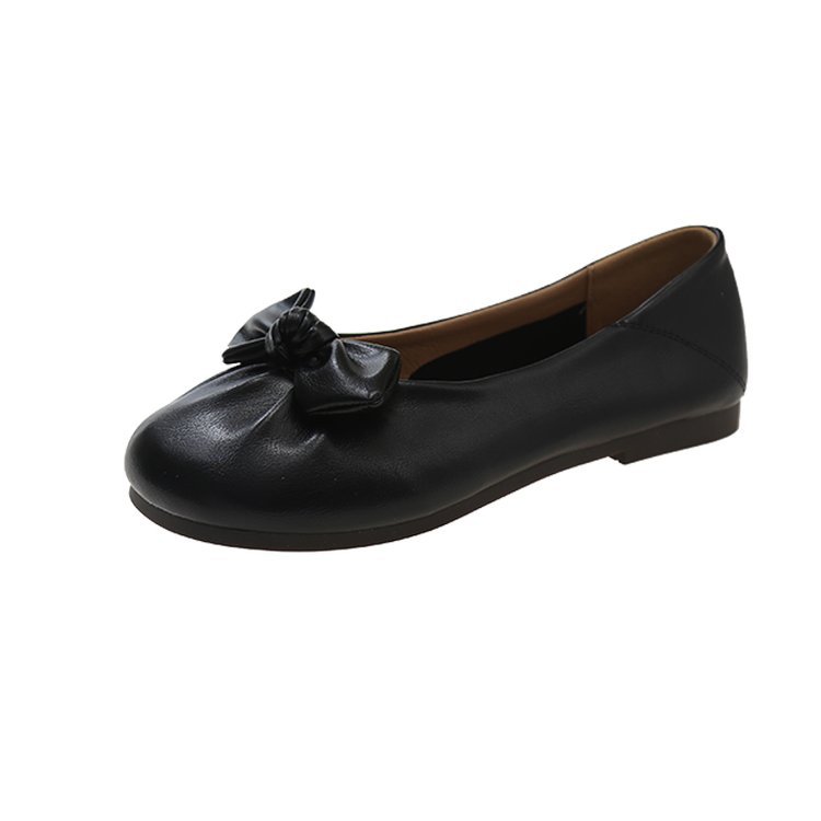 夏季新款蝴蝶结平底单鞋圆头浅口豆豆鞋软底软面女鞋