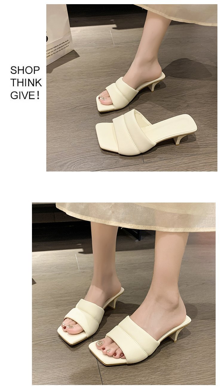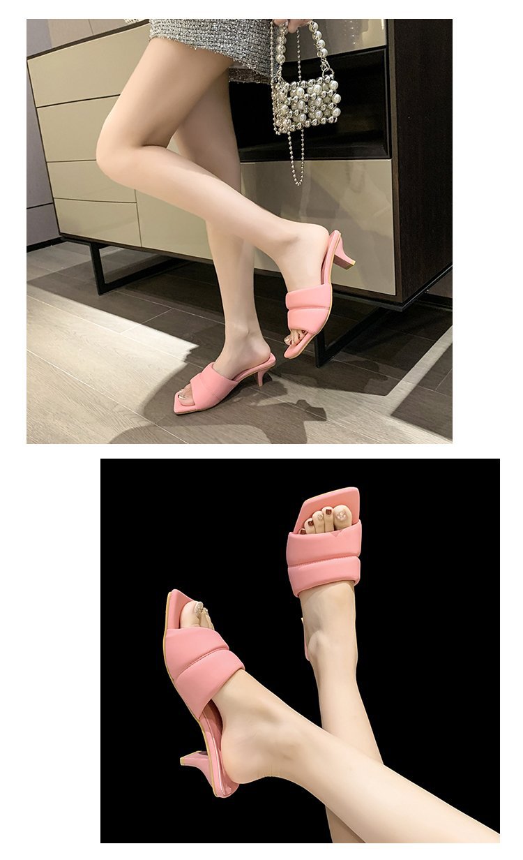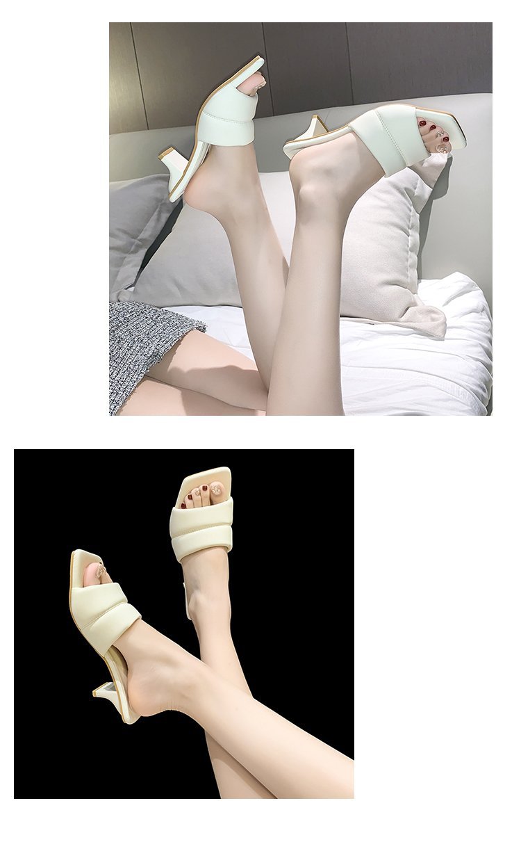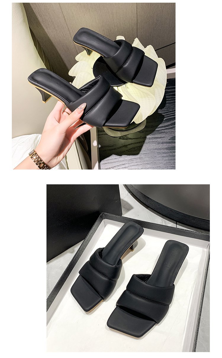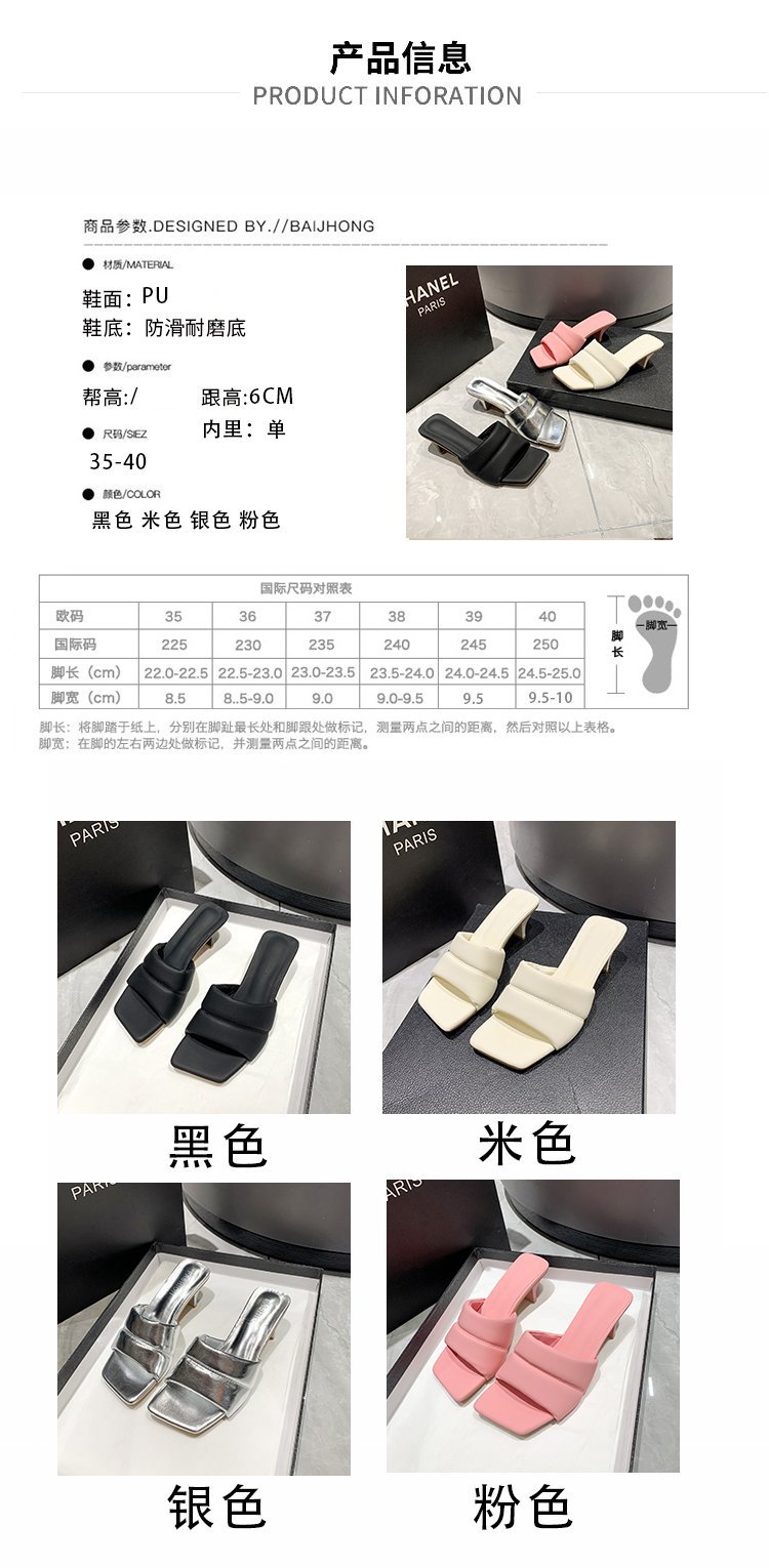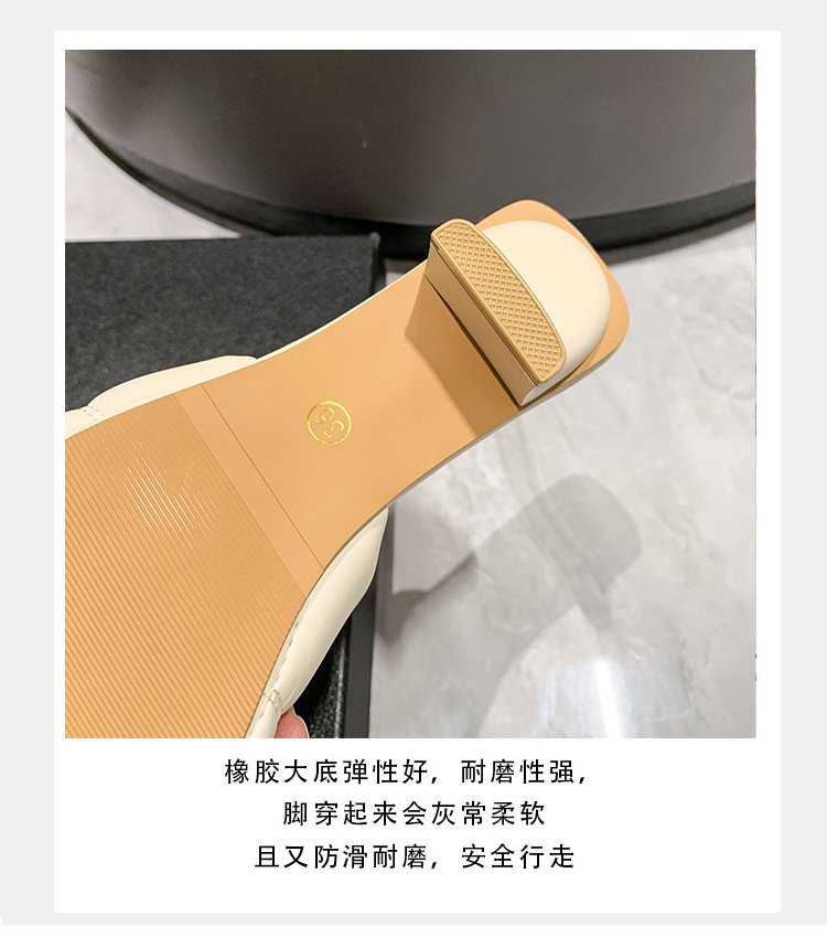 夏季新款粗跟凉拖鞋女外穿方头露趾一字高跟鞋时尚女鞋