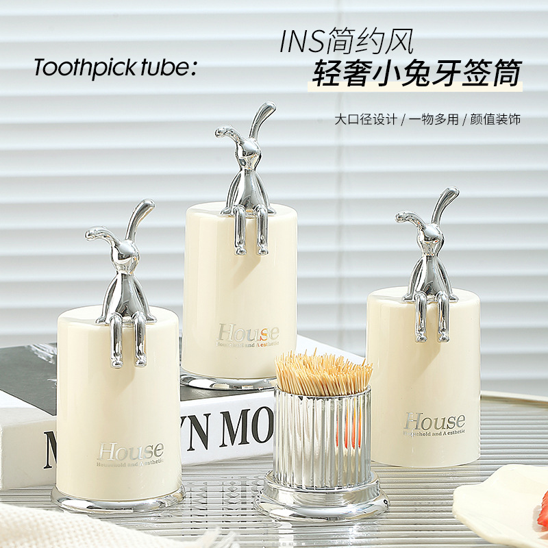 轻奢兔子牙签盒家用上下盖牙线盒棉签牙签罐便携桌面牙签收纳盒