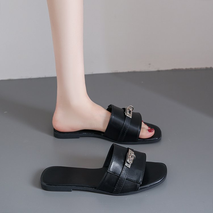 夏季新款韩版平底拖鞋女外穿露趾一字拖时尚休闲凉拖