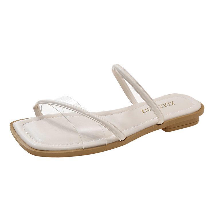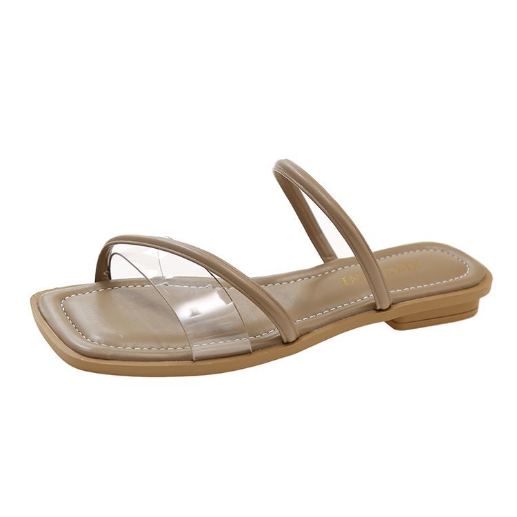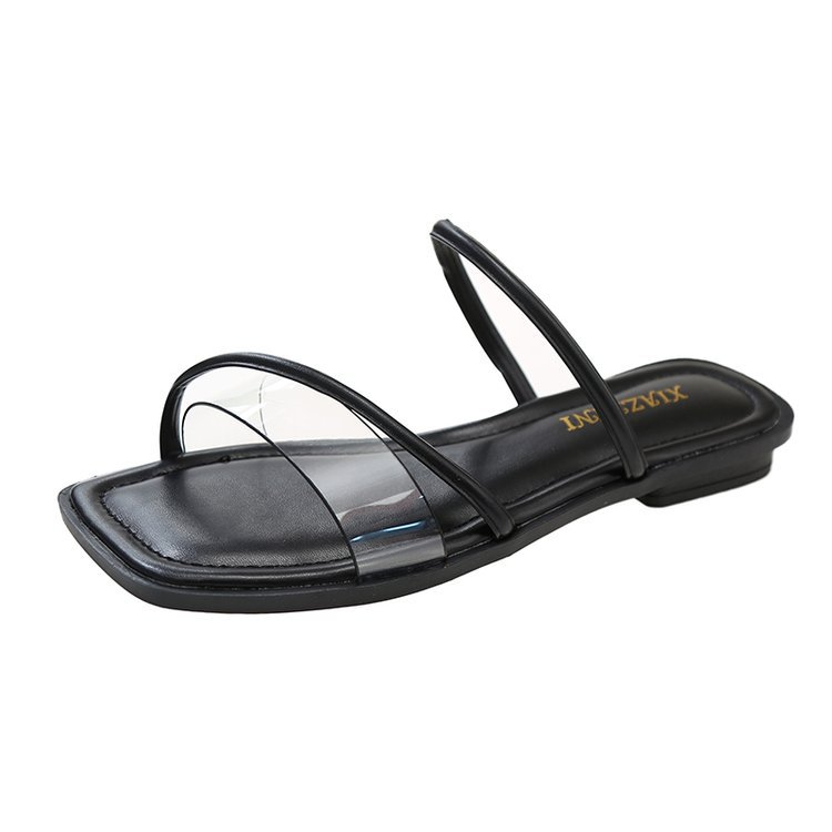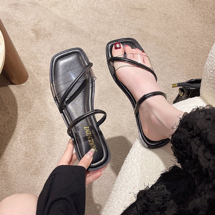 夏季新款韩版平底拖鞋女外穿方头露趾透明一字拖时尚凉拖