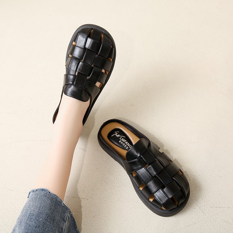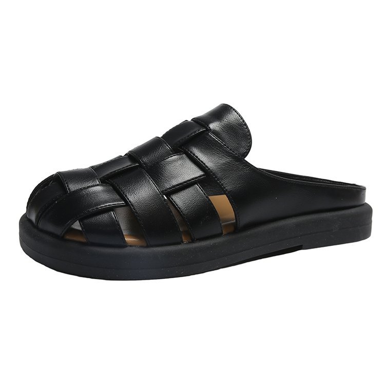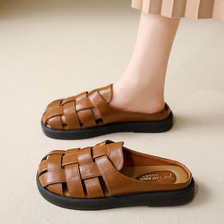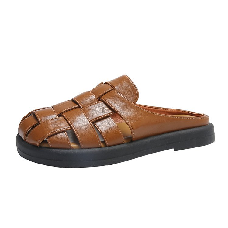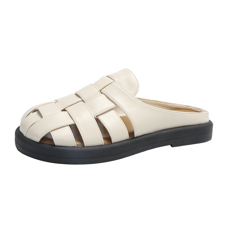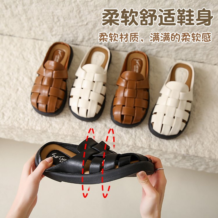 夏季新款包头镂空平底拖鞋女外穿编织套脚懒人鞋时尚女鞋