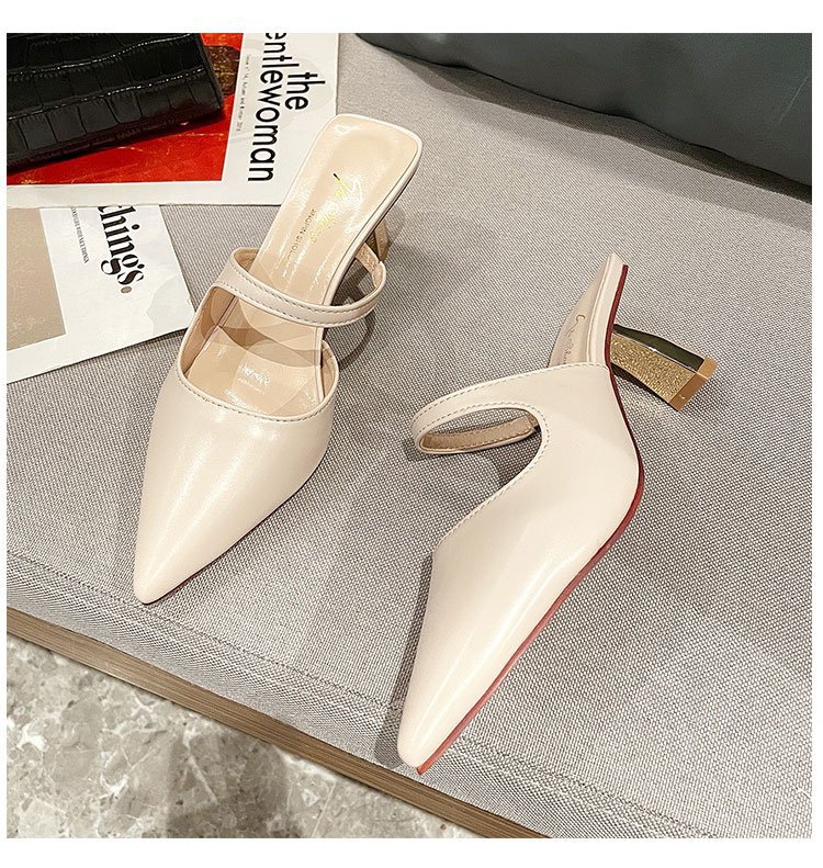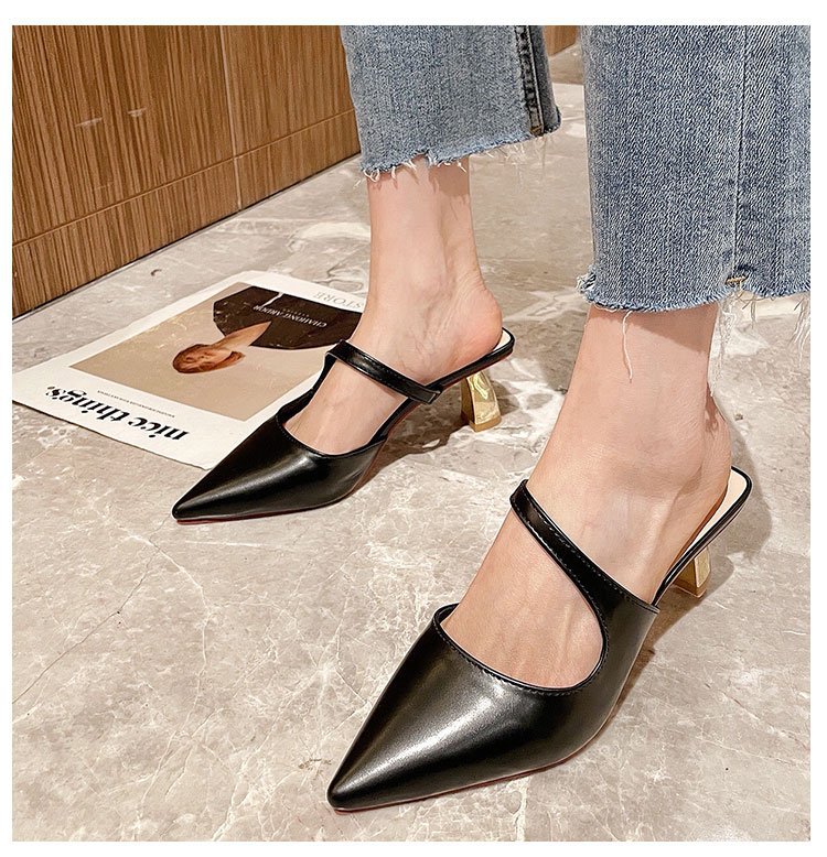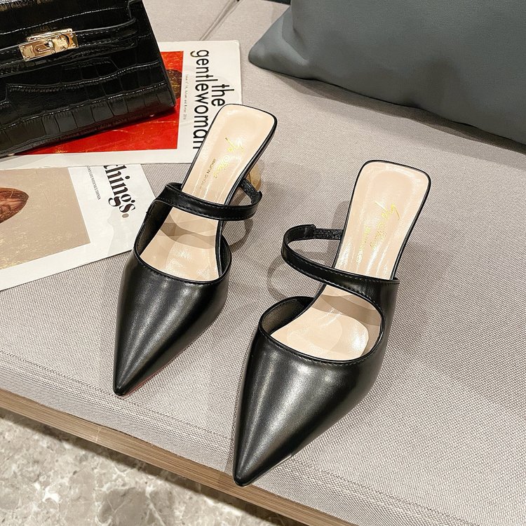 夏季新款韩版包头半拖鞋外穿尖头细跟高跟鞋时尚镂空女鞋