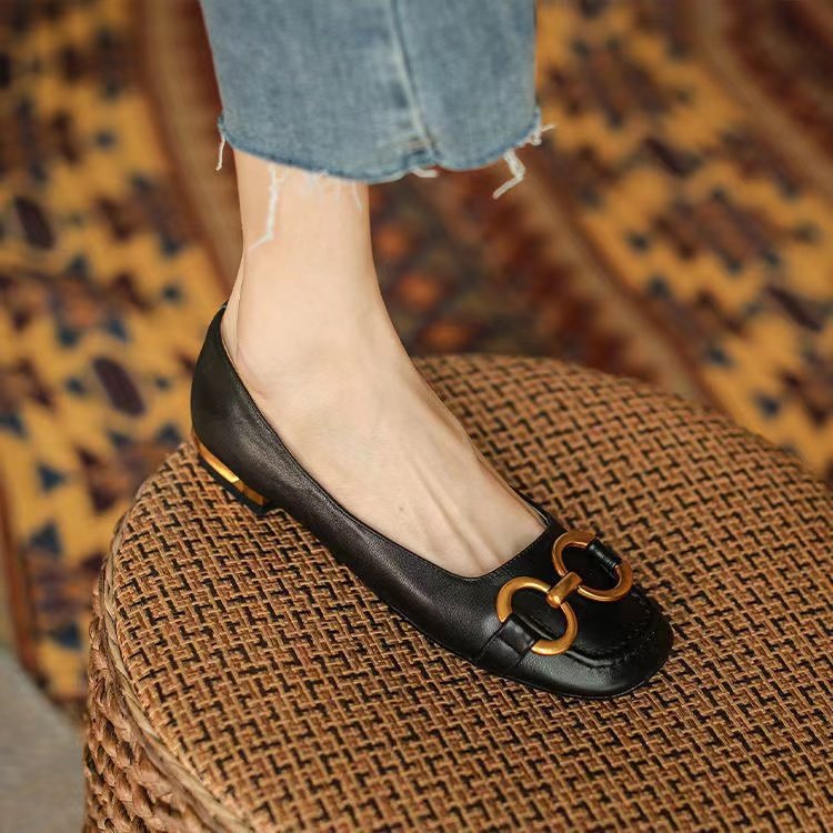 春季新款韩版低跟单鞋方头浅口豆豆鞋时尚金属扣女鞋