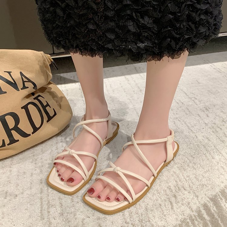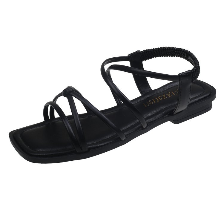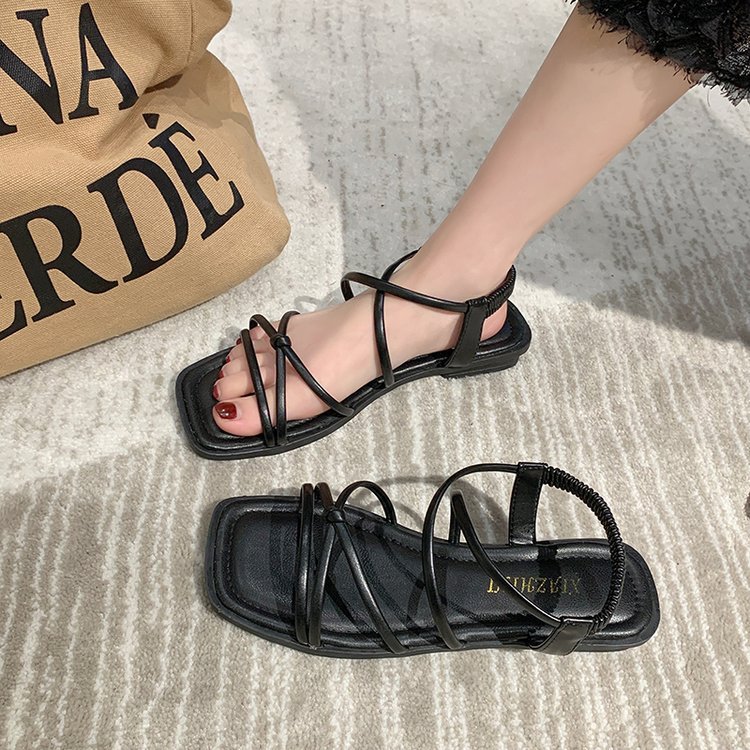 春季新款平底凉鞋女外穿交叉松紧套脚休闲露趾沙滩女鞋
