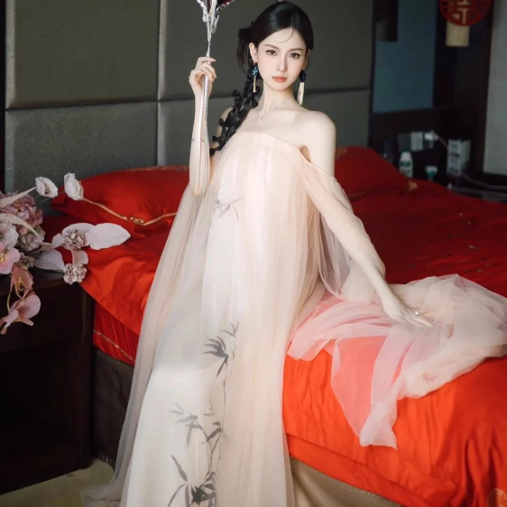 新中式晨袍新娘结婚订婚拍照仙女长裙高档感小众轻婚纱礼服连衣裙
