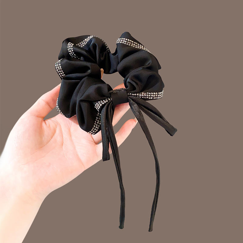 法式高级感缎面蝴蝶结飘带大肠发圈精致水钻扎马尾头绳发饰橡皮筋