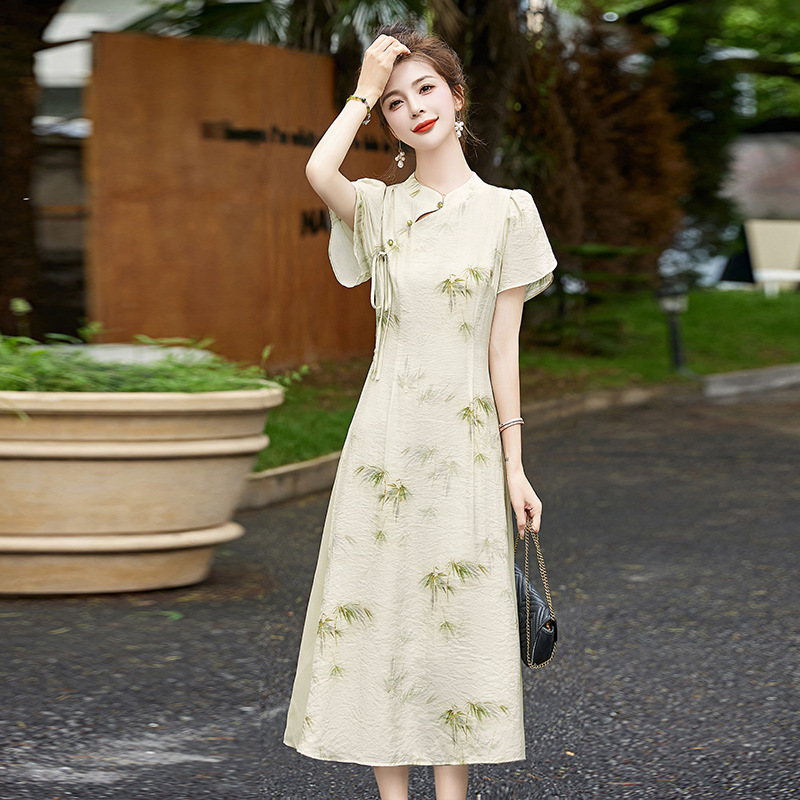 新中式连衣裙女夏新款改良版旗袍端庄典雅复古中国风修身女装