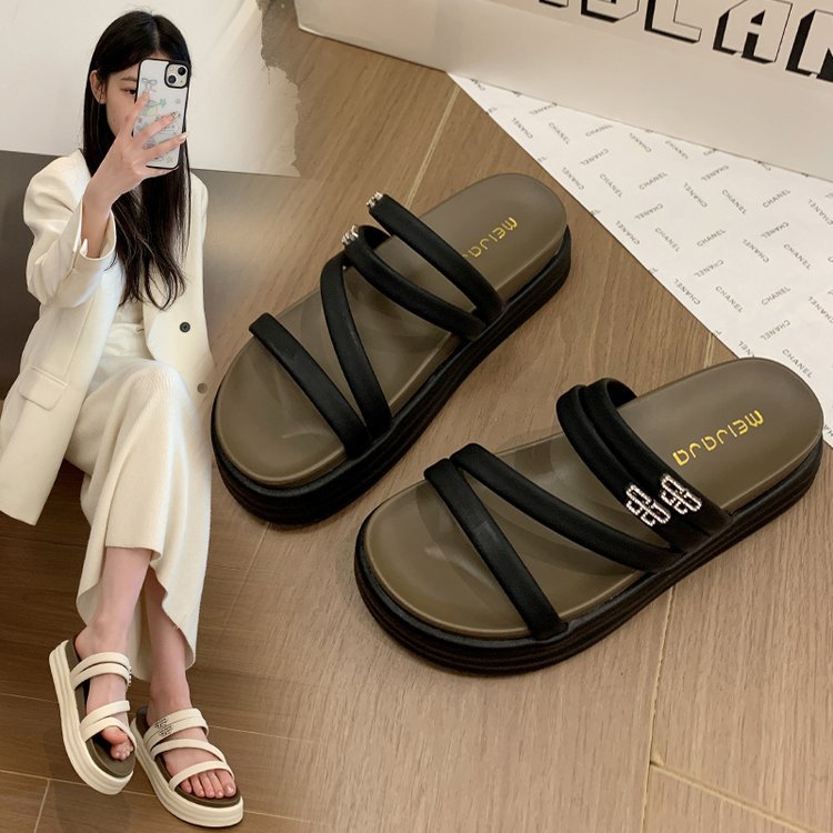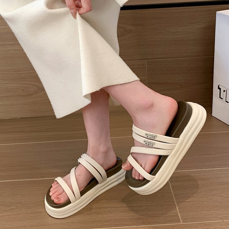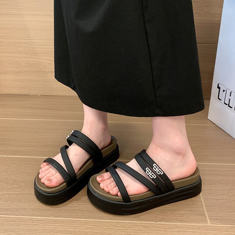 夏季新款韩版厚底拖鞋女外穿露趾一字拖时尚休闲沙滩凉拖