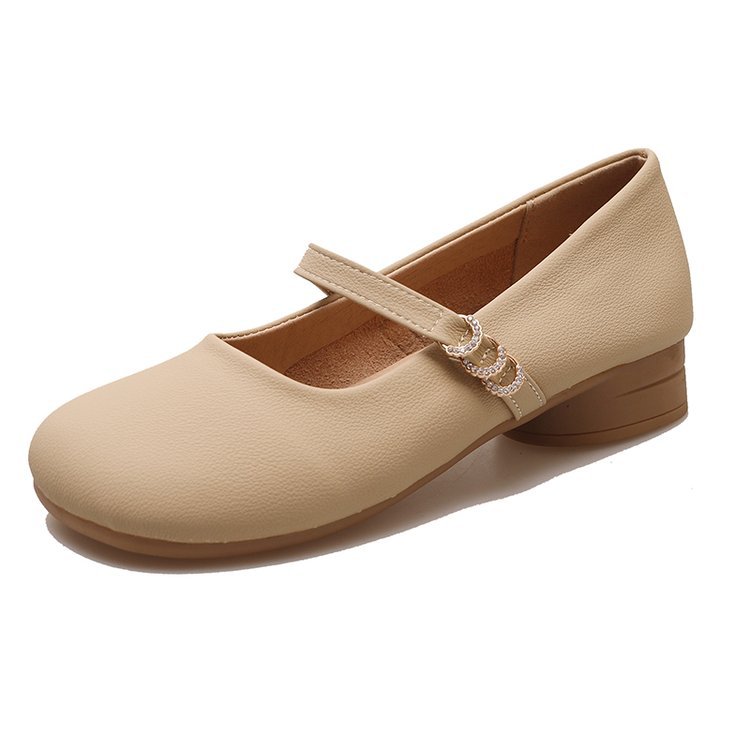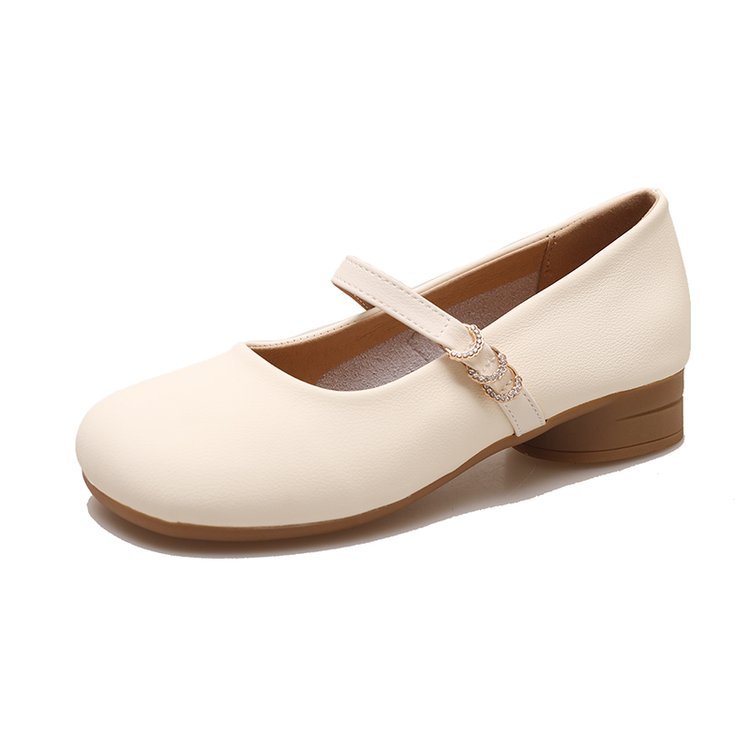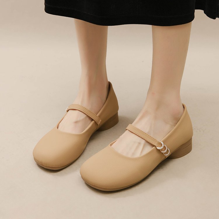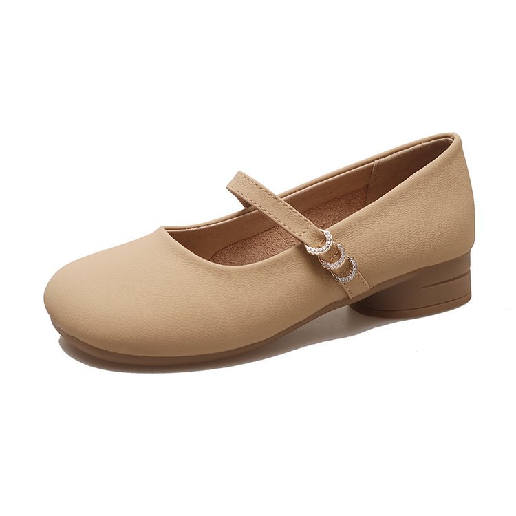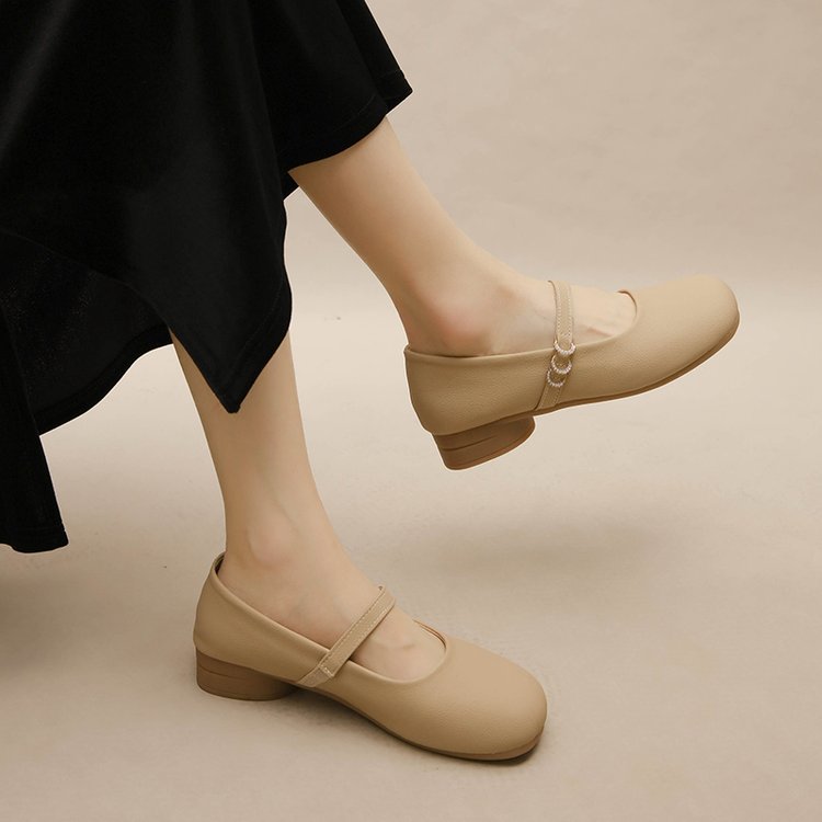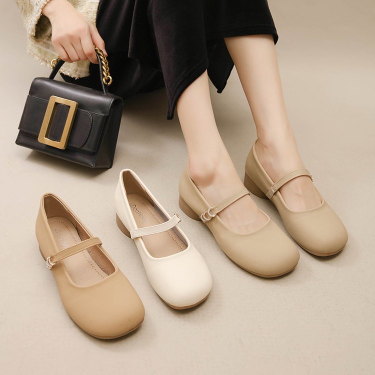 秋季新款低跟单鞋女方头浅口一字带玛丽珍鞋粗跟软底女鞋