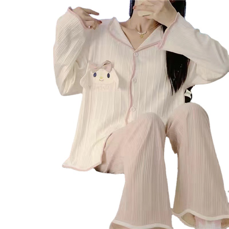 睡衣女士春秋款年新款长袖刺绣大码夏天春秋季家居服套装