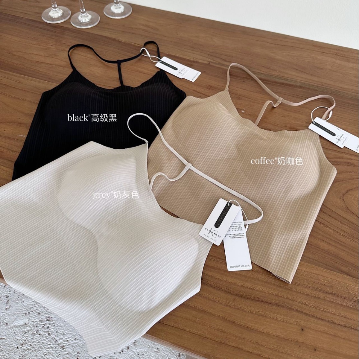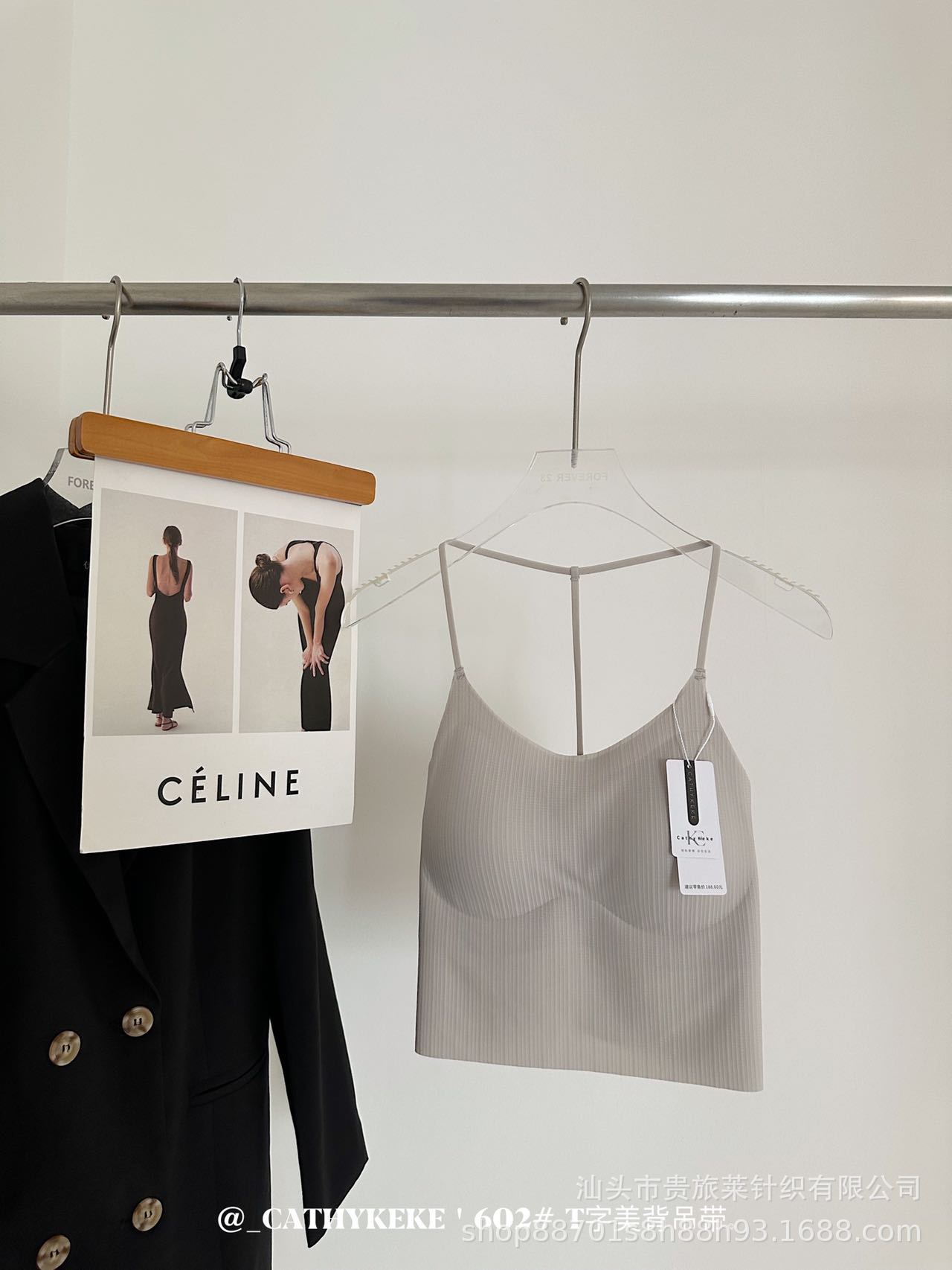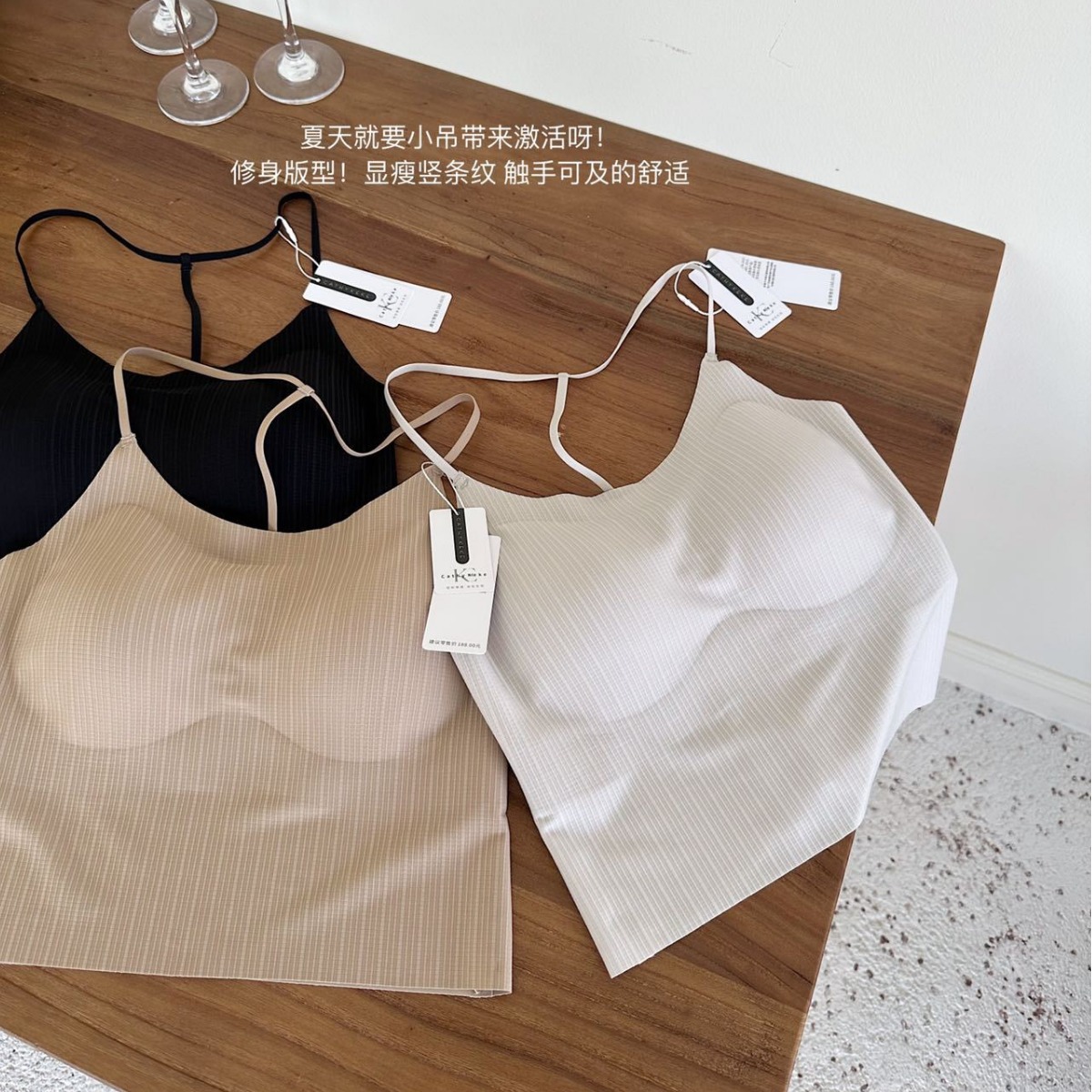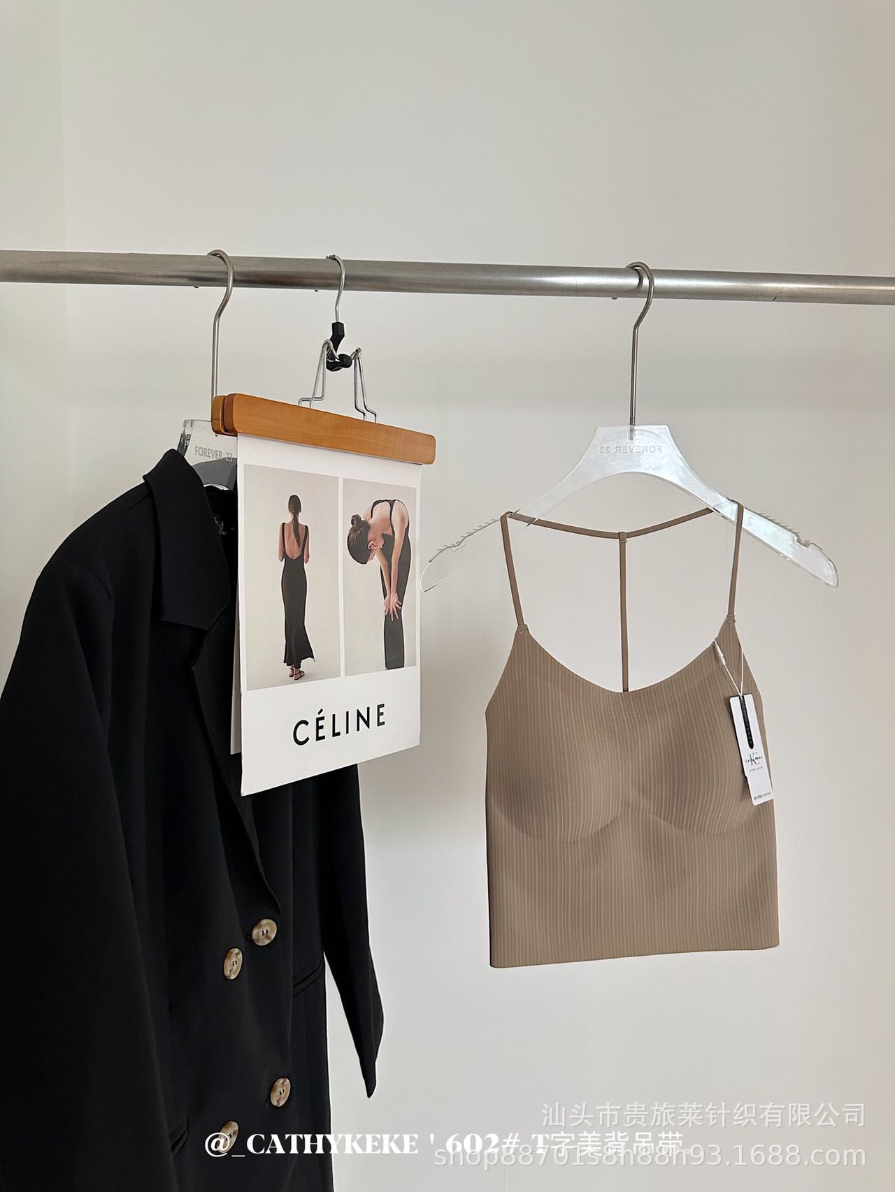 无痕内衣女T字美背吊带显瘦韩范百搭免胸垫无钢圈聚拢文胸背心衫