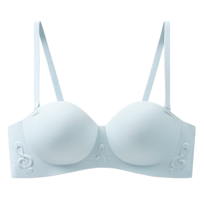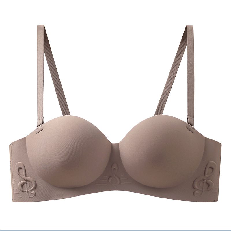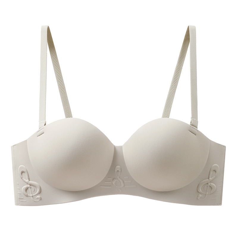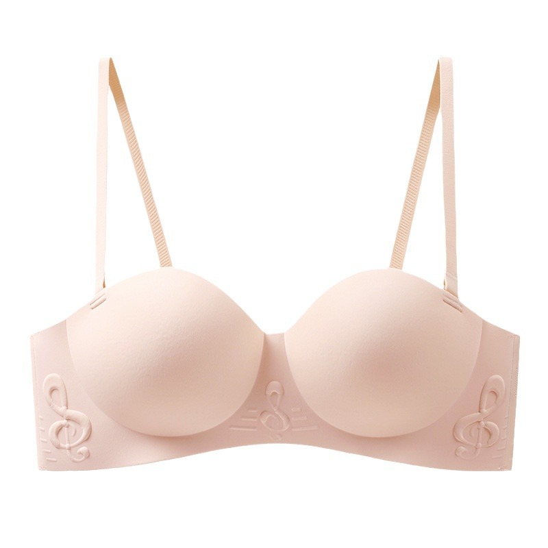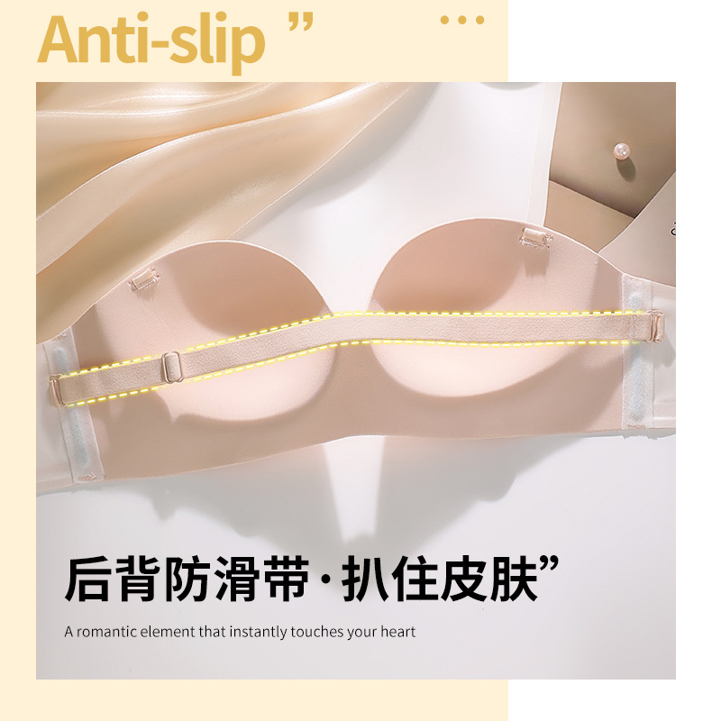 原创纯欲无肩带内衣女小胸聚拢无钢圈半罩杯文胸果冻胶聚拢文胸罩