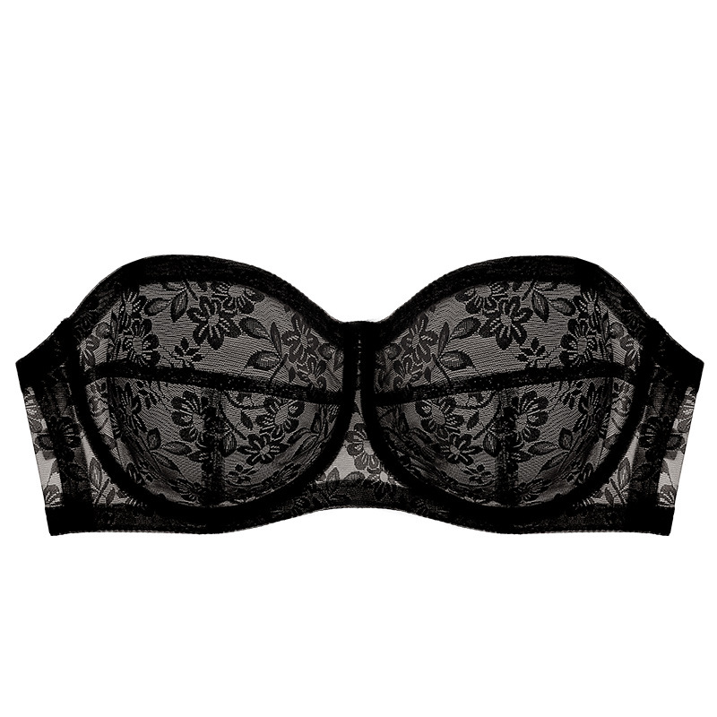 20D夏季超薄冰丝裸感无痕美背女内衣透气抹胸大胸显小固定杯聚拢