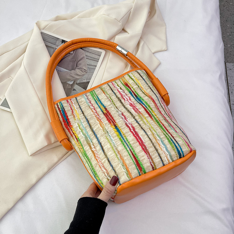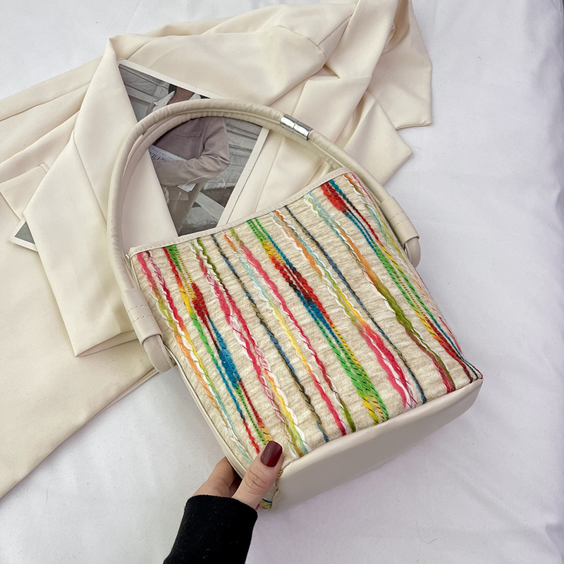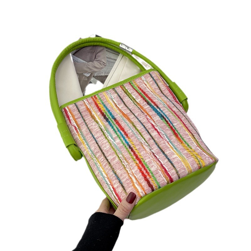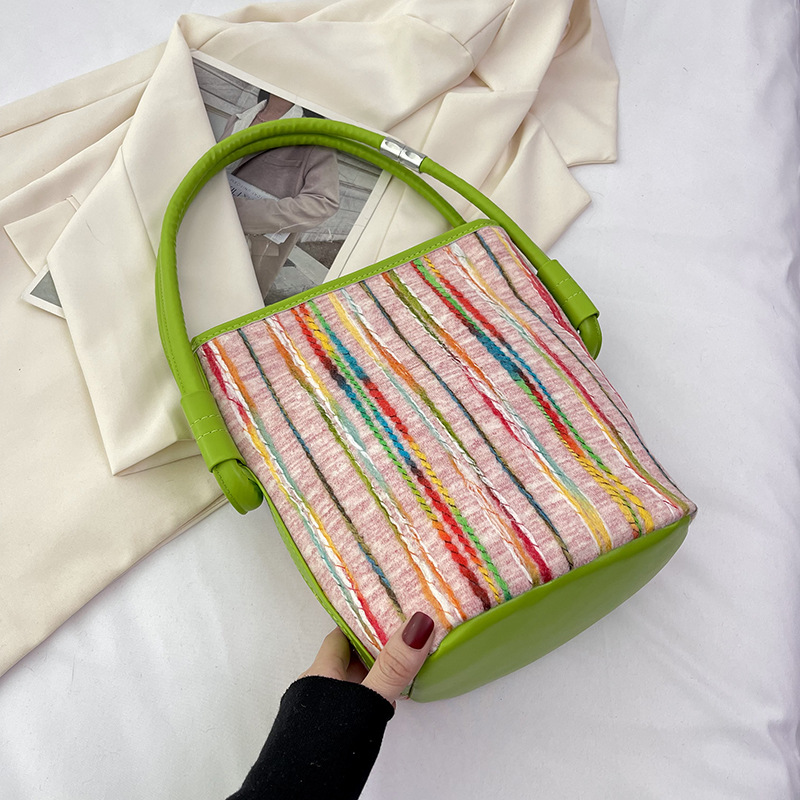 夏季彩色编织条纹手提小包包女新款夏季简约小方包时尚斜挎包