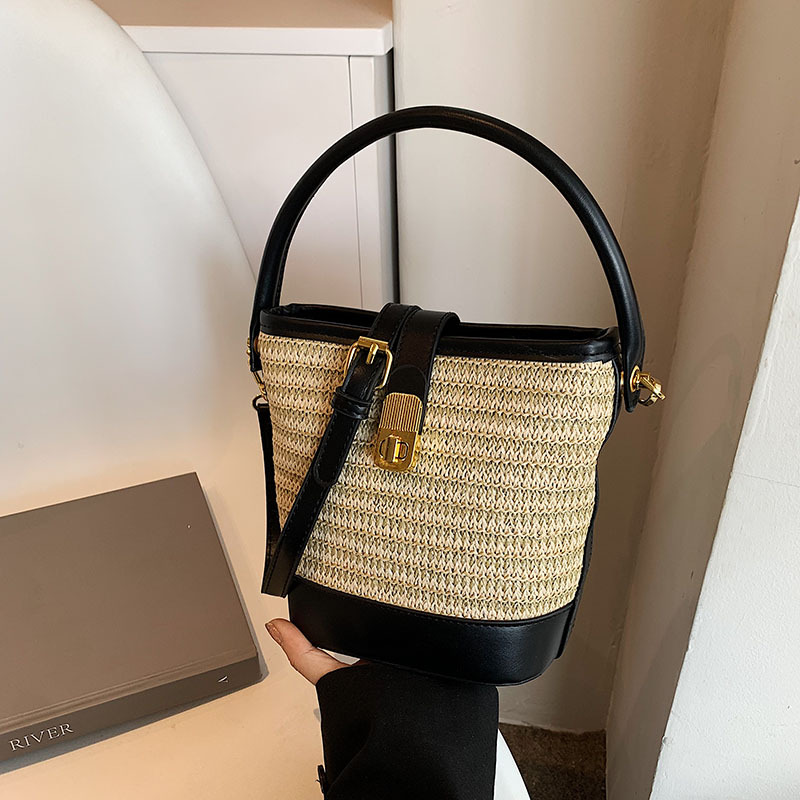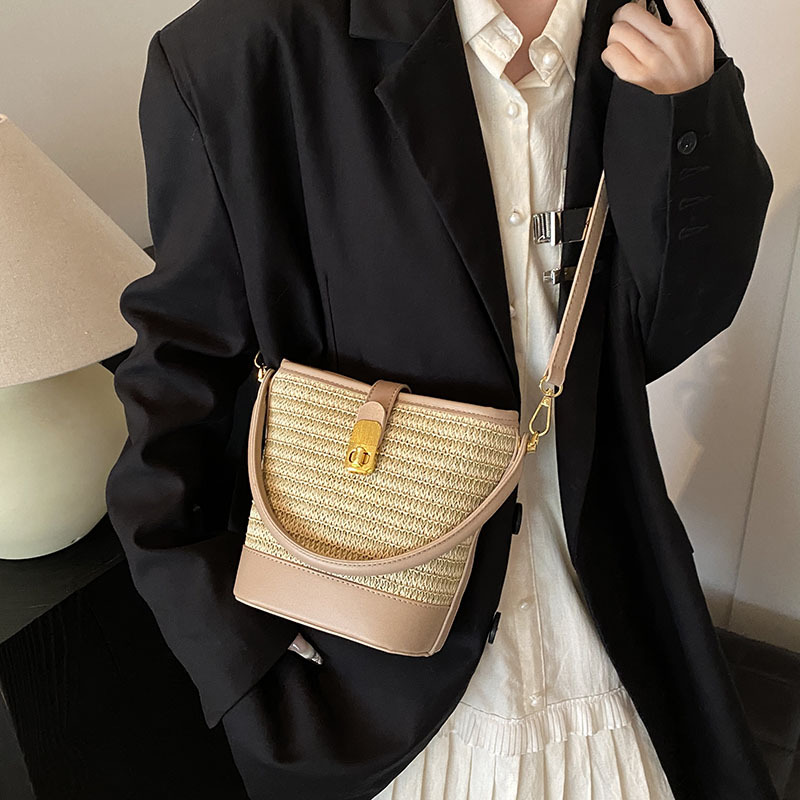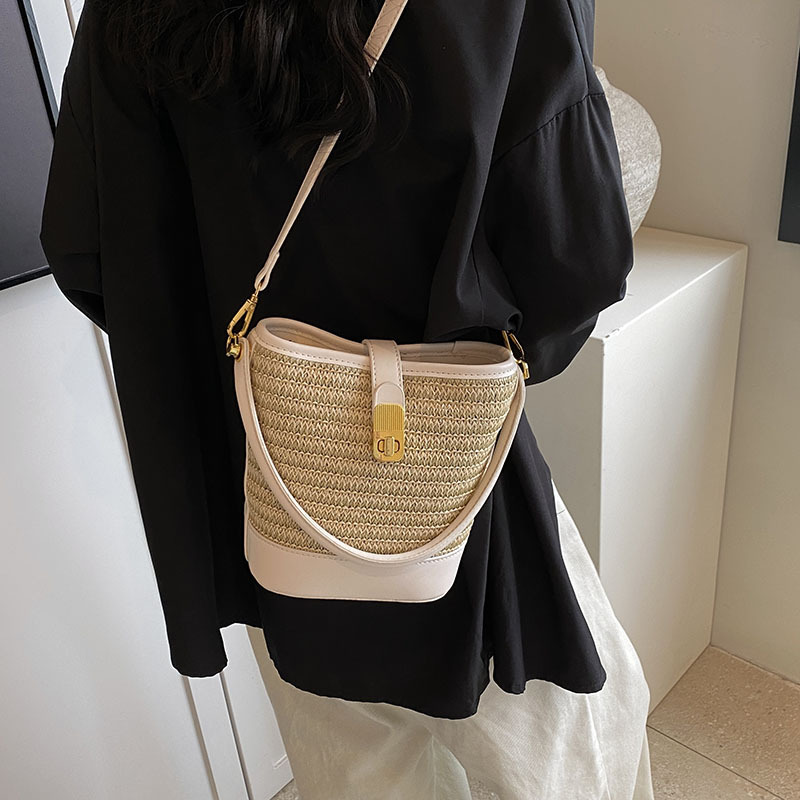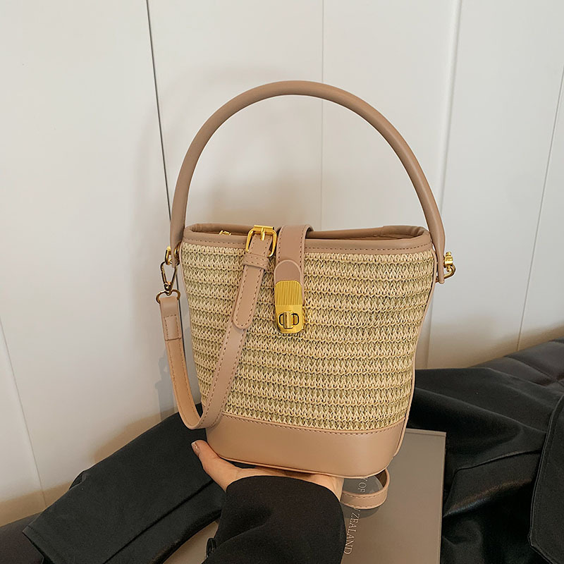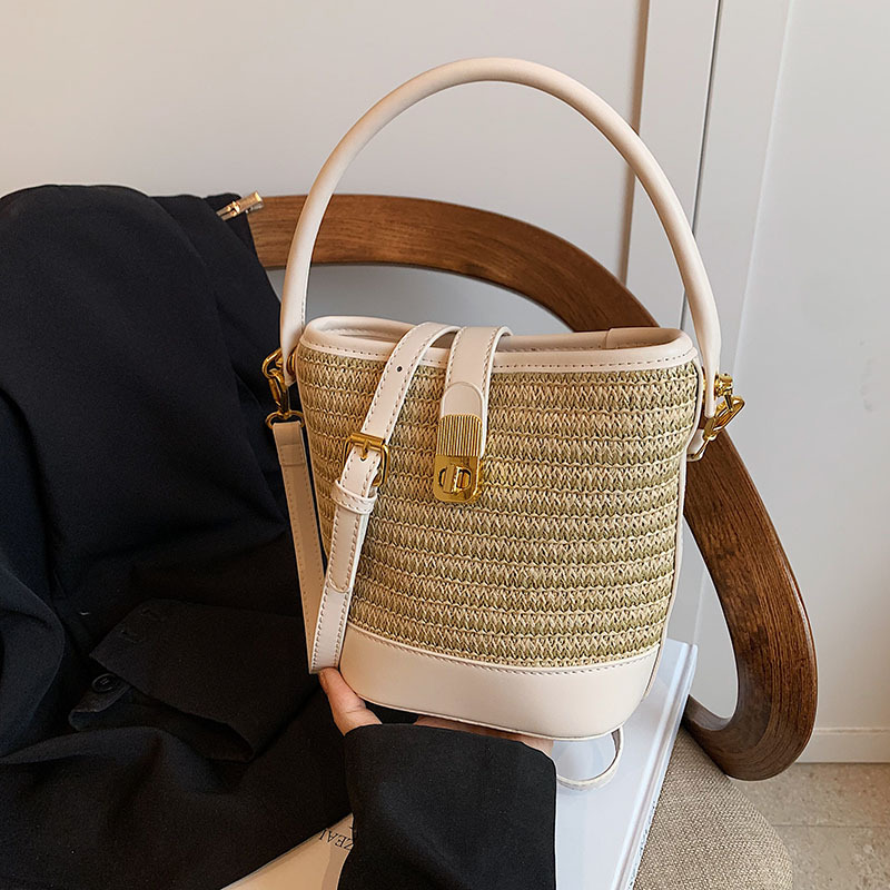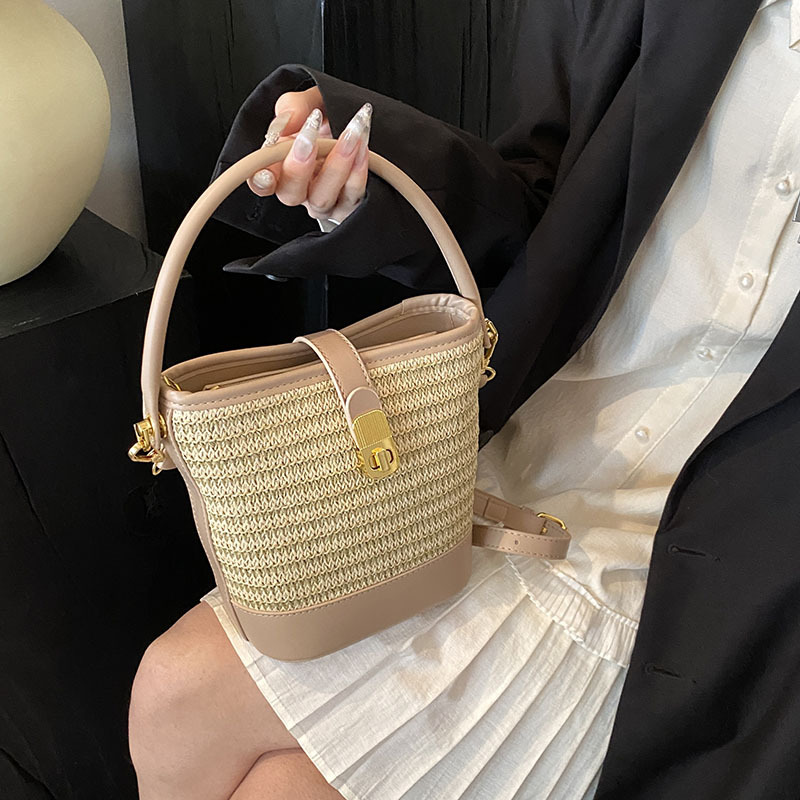 韩版ins休闲编织草编包包女新款度假风时尚手提斜挎包水桶包