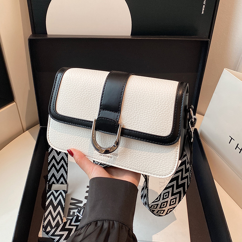 韩系拼接小方包女2025春季新款小众设计磨砂单肩包时尚洋气斜挎包