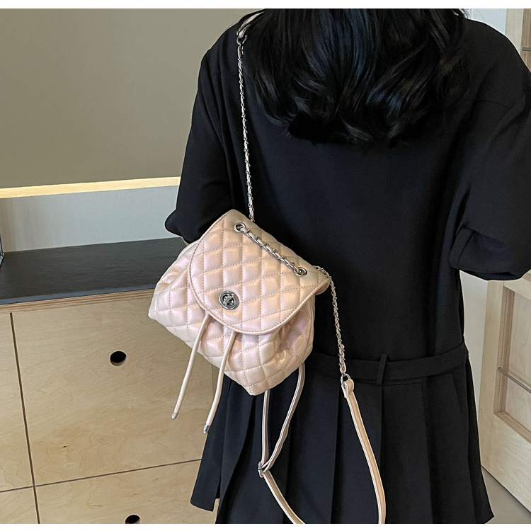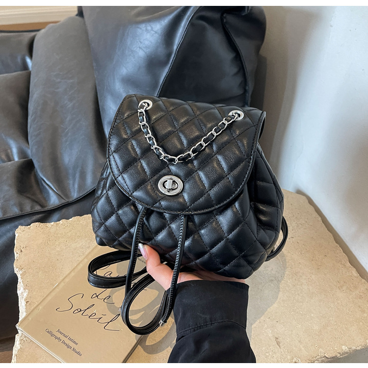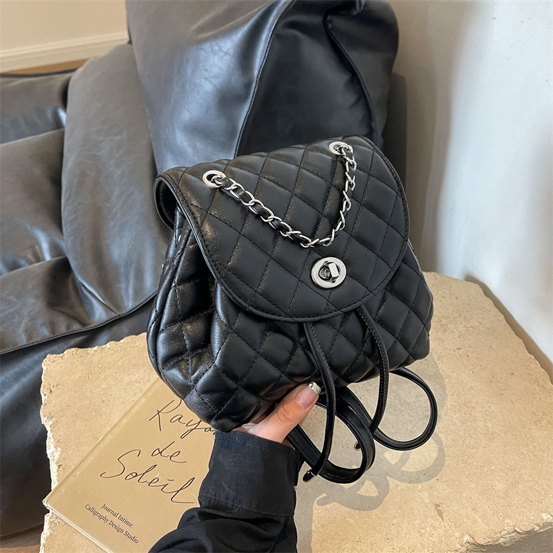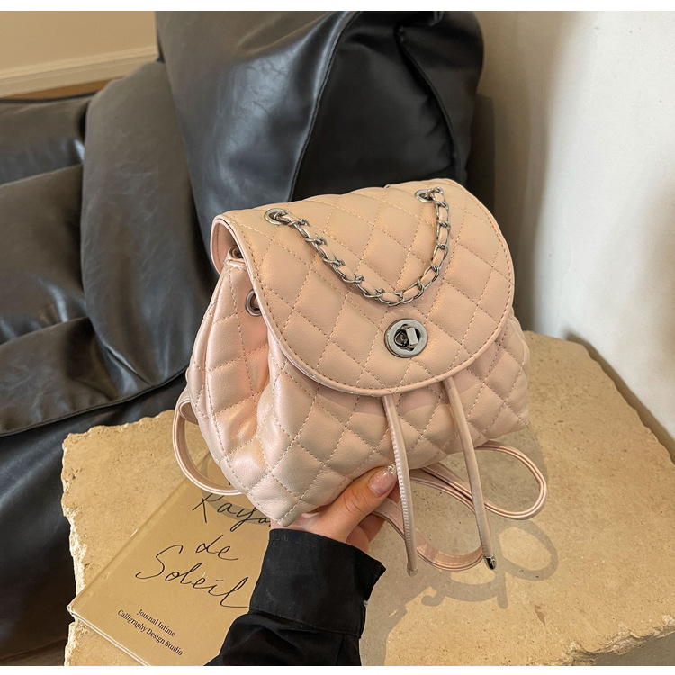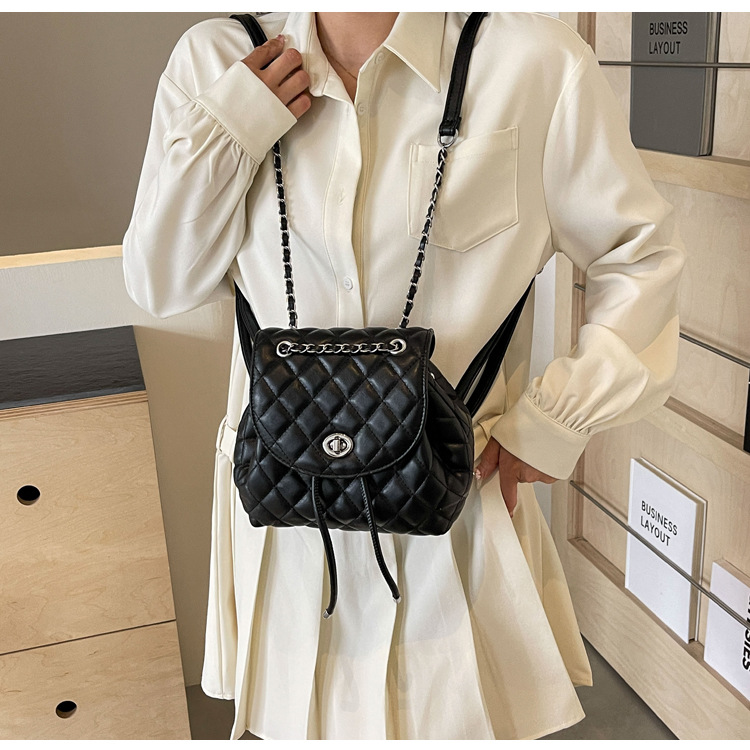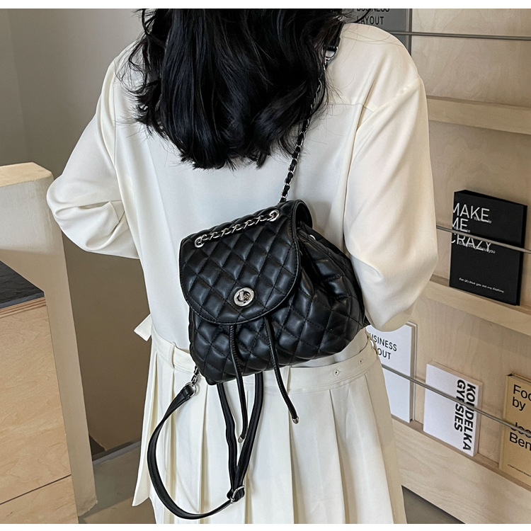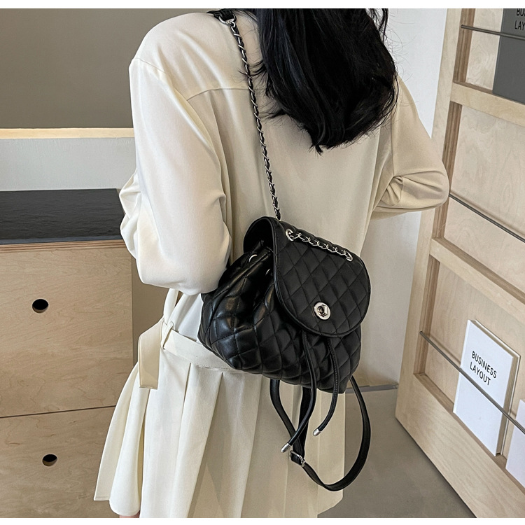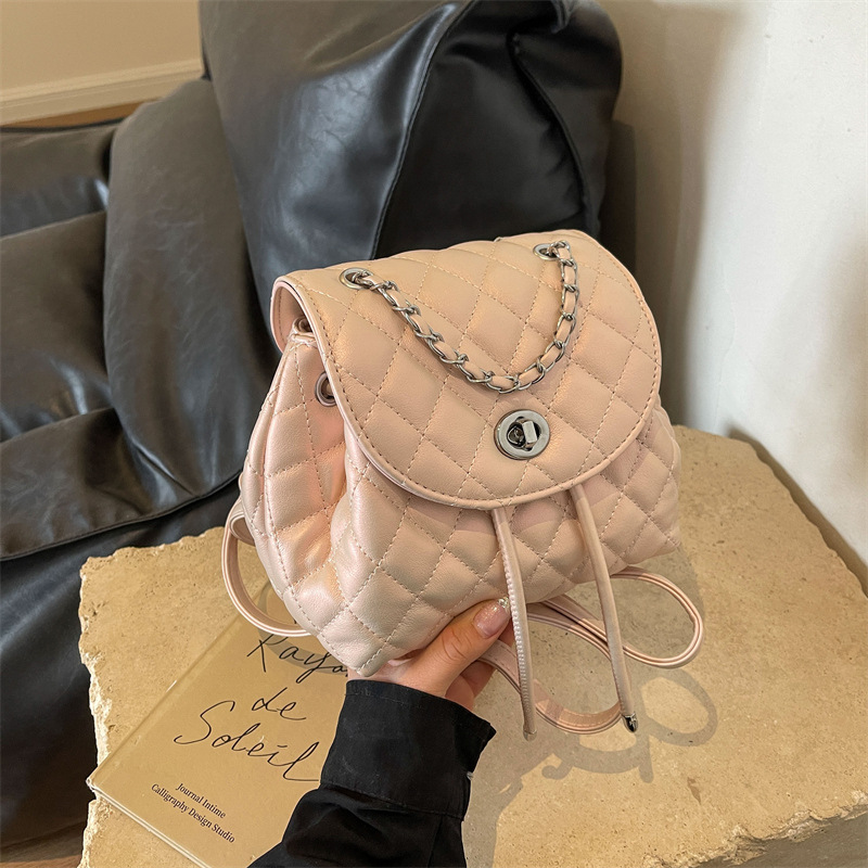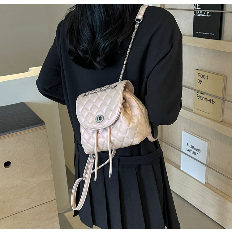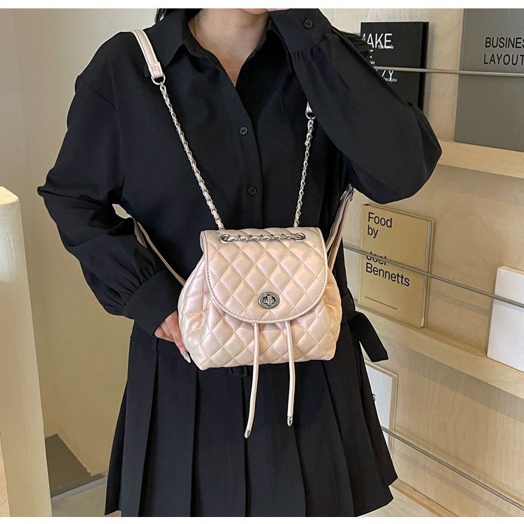 ins新款小香风韩版百搭菱格链条双肩包学生书包时尚潮流背包
