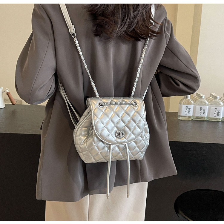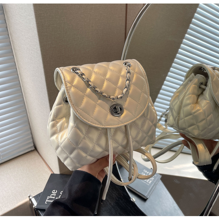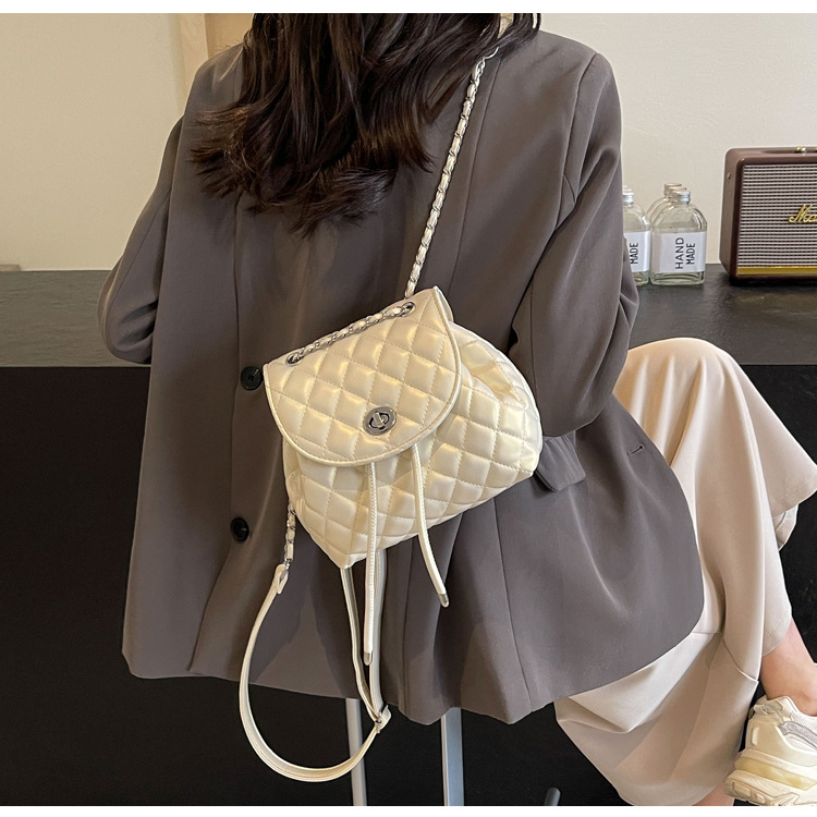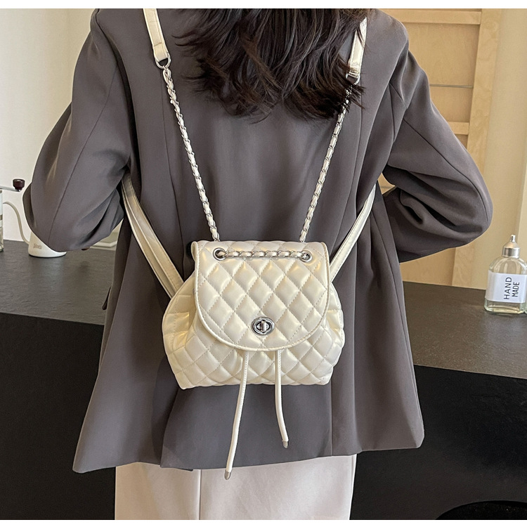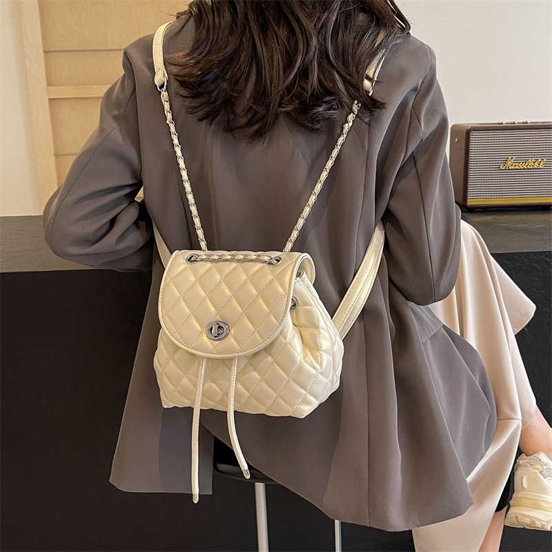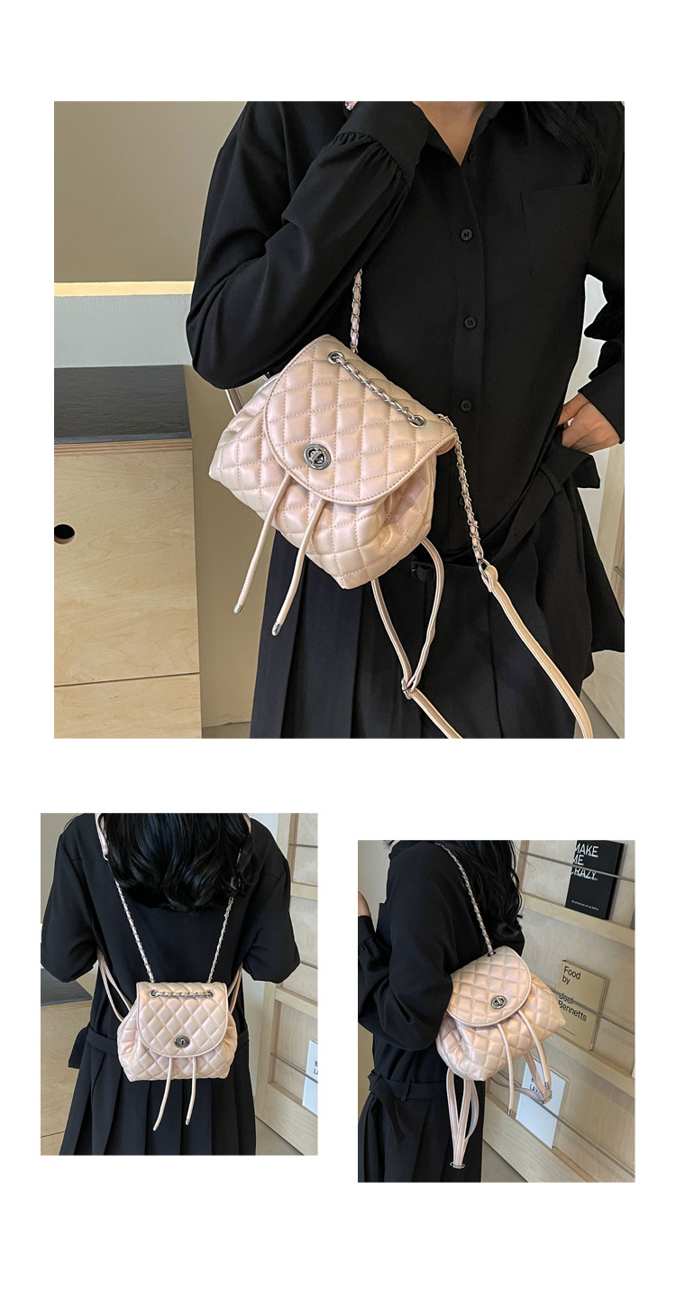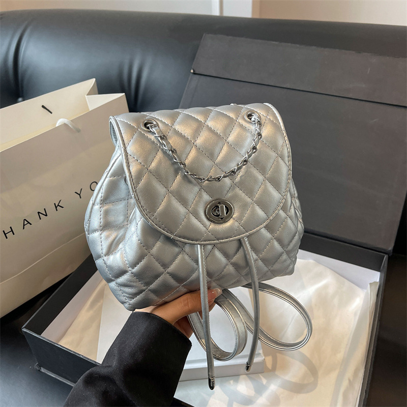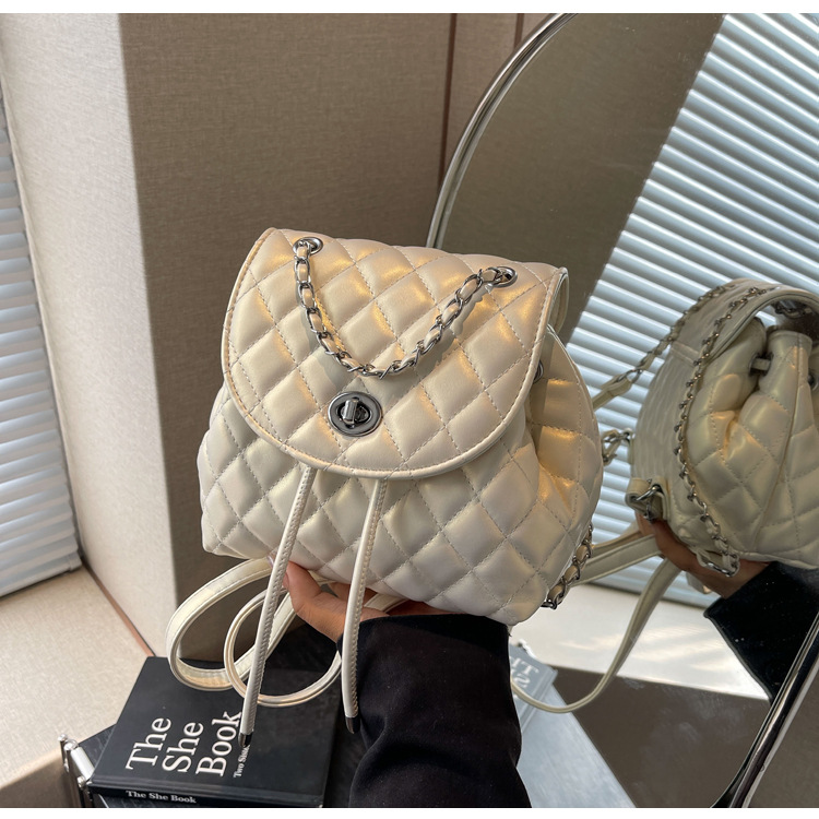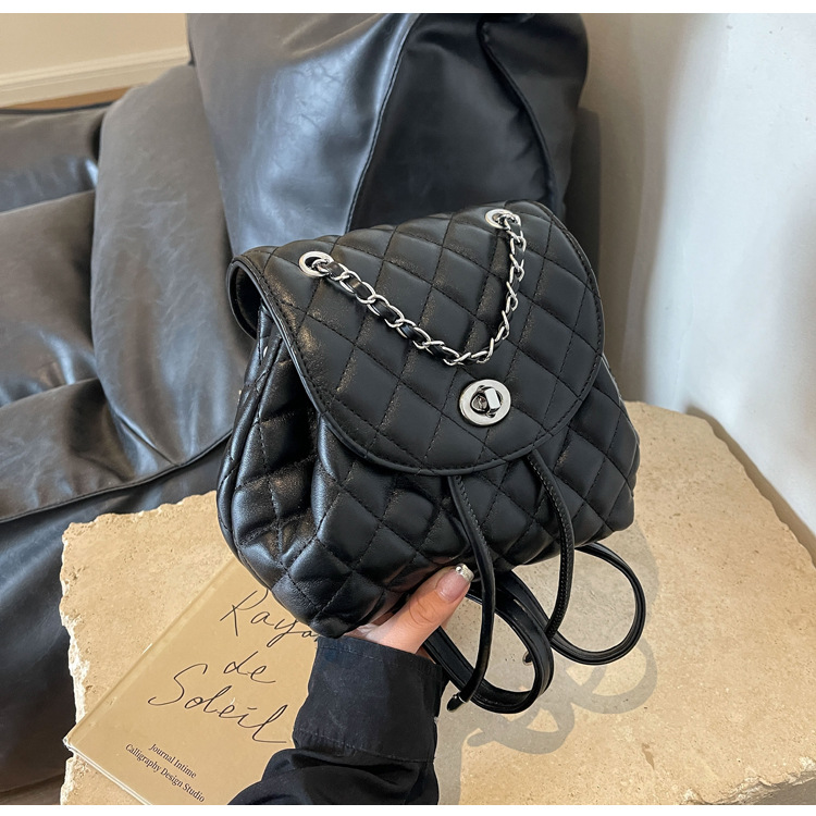 ins新款小香风韩版百搭菱格链条双肩包学生书包时尚潮流背包